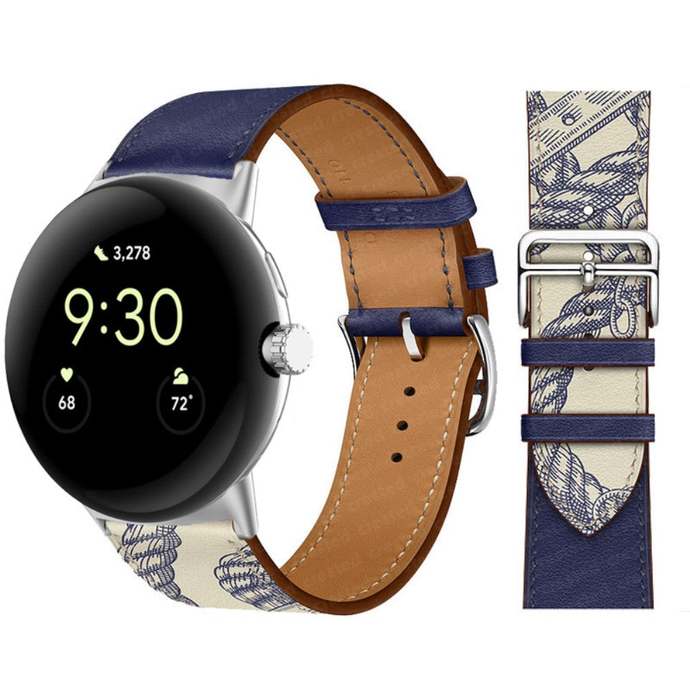 Bracelet de montre en cuir véritable Google Pixel Watch - Bleu Indigo