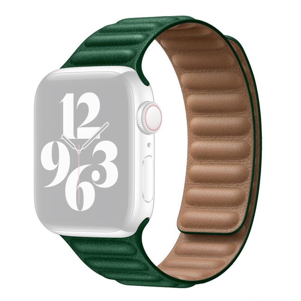 Pour Apple Watch Ultra 49mm / Series 8 45mm / Series 7 45mm / Series 6 / 5 / 4 / SE 44mm / SE (2022) 44mm / Series 3 / 2 / 1 42mm Magnétique bracelet de montre en cuir véritable Sports Adjustable Wristband Replacement - Alfalfa Fabriqué en matériau de cuir véritable, doux et respirant, confortable à porter La longueur de la conception magnétique peut être ajustée, et n'importe quel poignet peut être porté Étanche et résistant à la transpiration, ne t'inquiète plus de te laver les mains, de transpirer et de mouiller le bracelet Avec des aimants premium intégrés, donc même si tu secoues ton bras, tu n'as pas à t'inquiéter que la montre tombe Installation sans outil, te permettant de changer facilement les bracelets de différentes couleurs en quelques secondes pour correspondre à différents styles Spécifications : Matériau : Cuir véritable Taille : 118mm+105mm Poignet : 160-220mm Compatible avec : Apple Watch Series 1 42mm Apple Watch Series 2 42mm Apple Watch Series 3 42mm Apple Watch Series 5 44mm Apple Watch Series 4 44mm Contenu de l'emballage :1 x bracelet de montre Autres articles non inclus