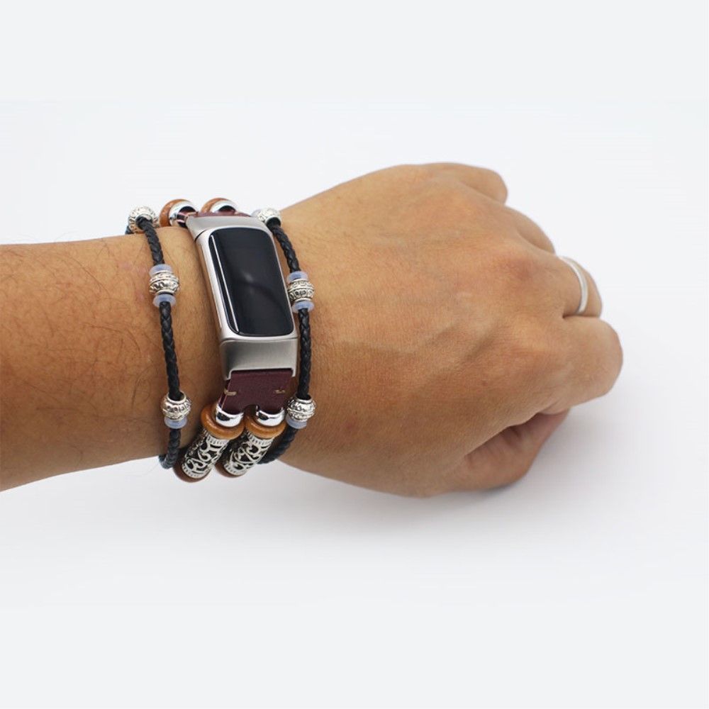 Bracelet de montre Fitbit Charge 5 en cuir avec décorations à la mode - Rouge Vin