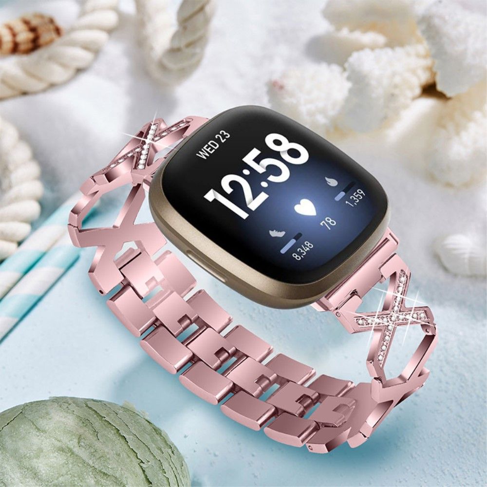 Bracelet de montre Fitbit Sense / Versa 3 rhinestone X-style stainless steel - Rose Pink