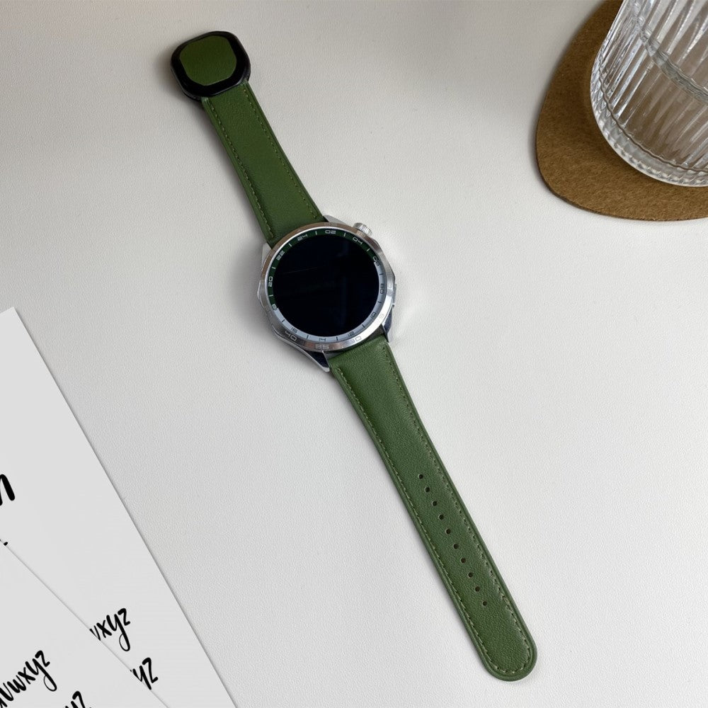 Bracelet de montre Huawei / Samsung / Garmin 20mm magnétique en cuir de vachette véritable - Vert Armée