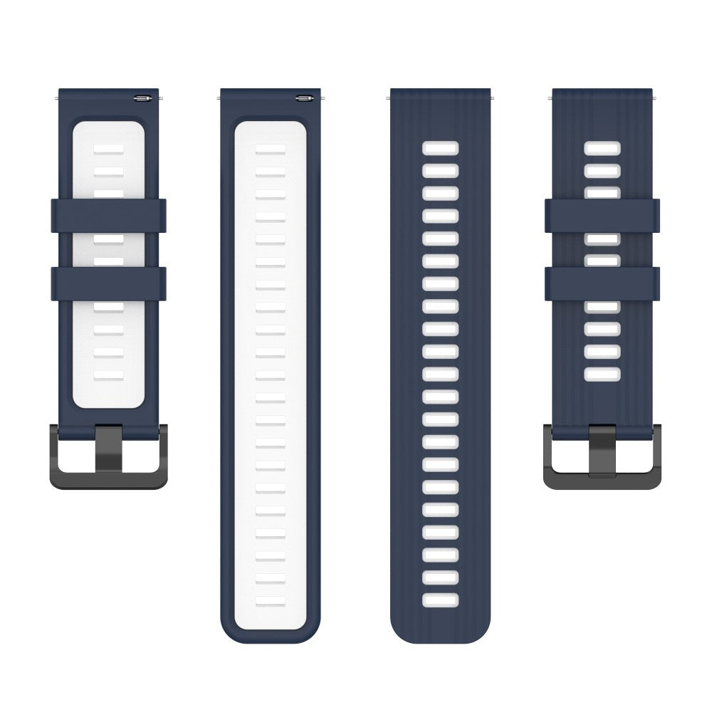 Bracelet en silicone de 22 mm à rayures pour Huawei / Samsung / Garmin - Bleu Nuit / Blanc