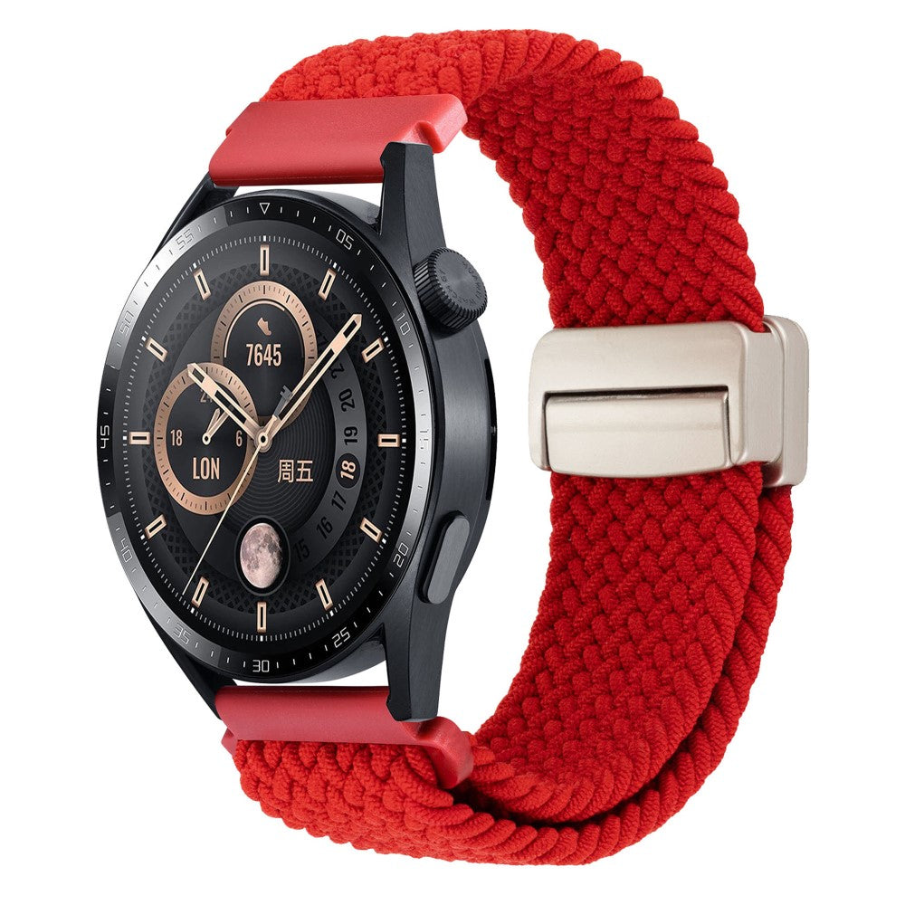 Bracelet universel de 22 mm à boucle magnétique en nylon tressé pour montre connectée - Rouge