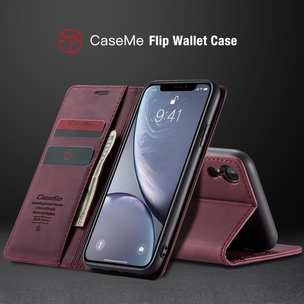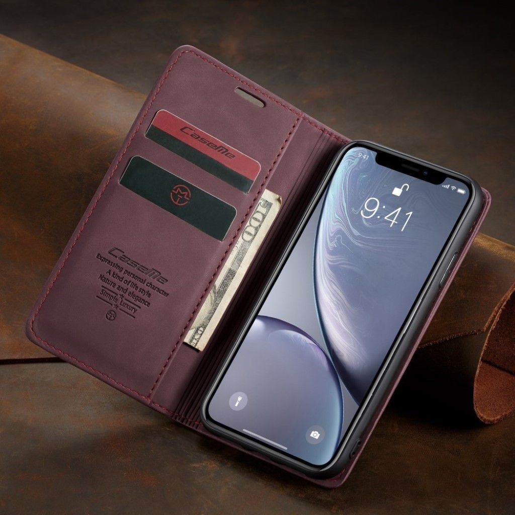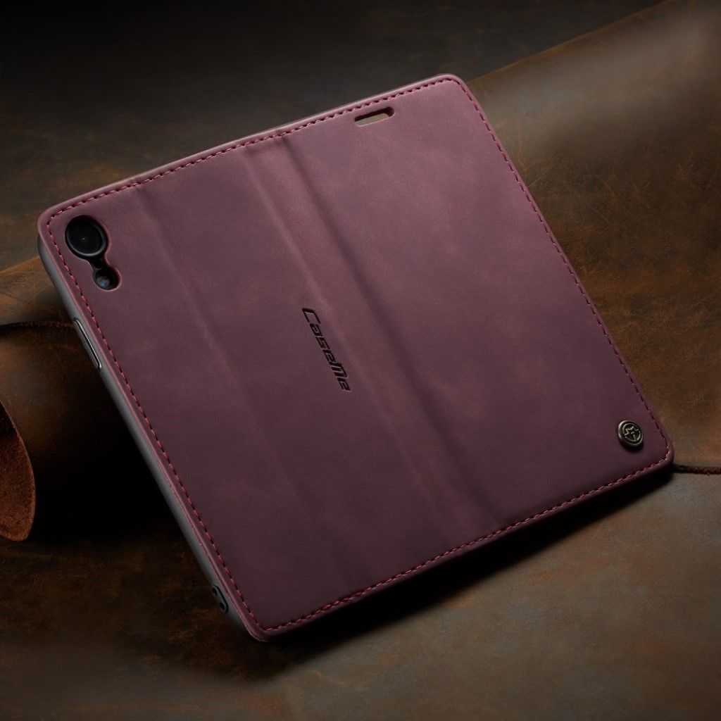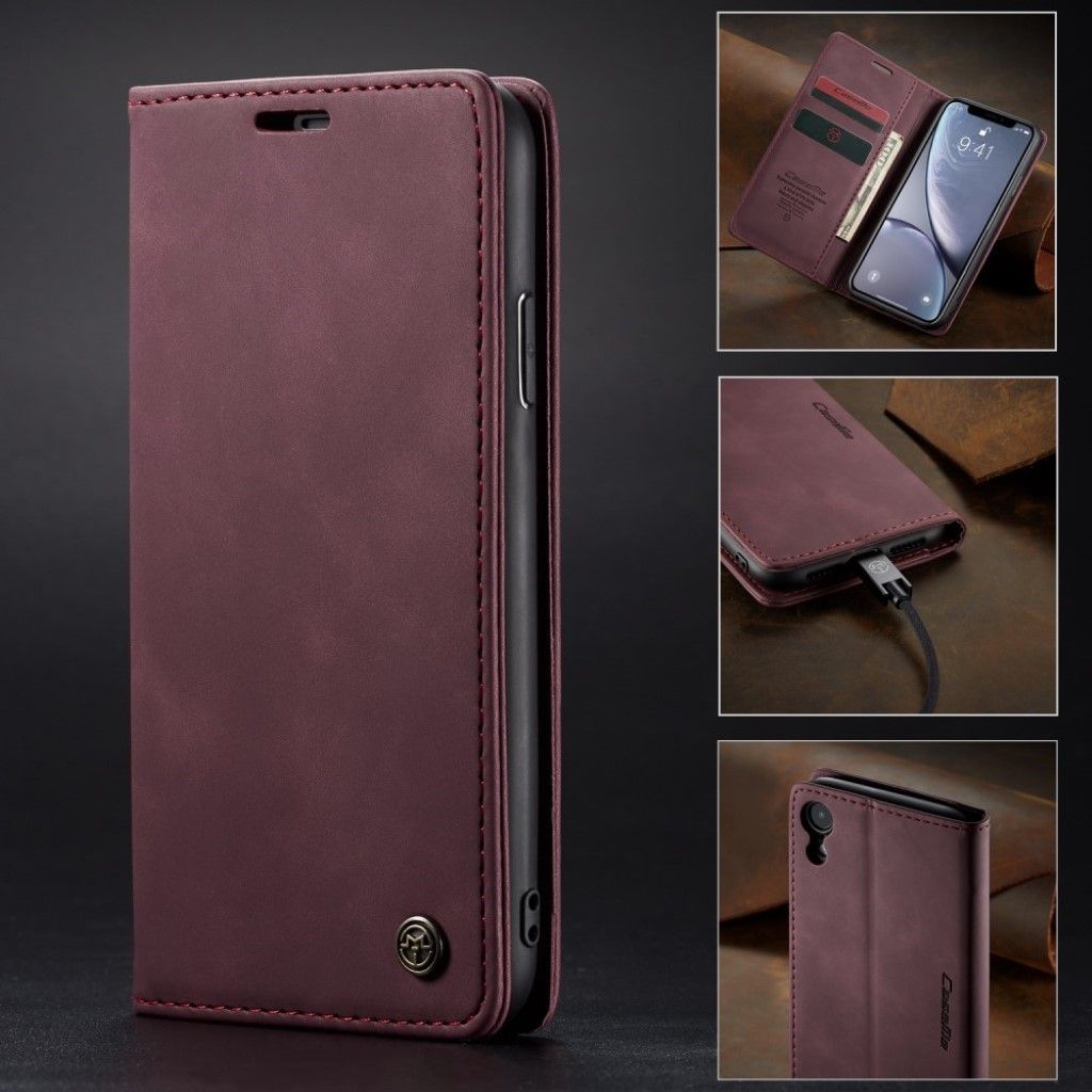 CASEME Coque à rabat en cuir pour iPhone Xr - Rouge Vin