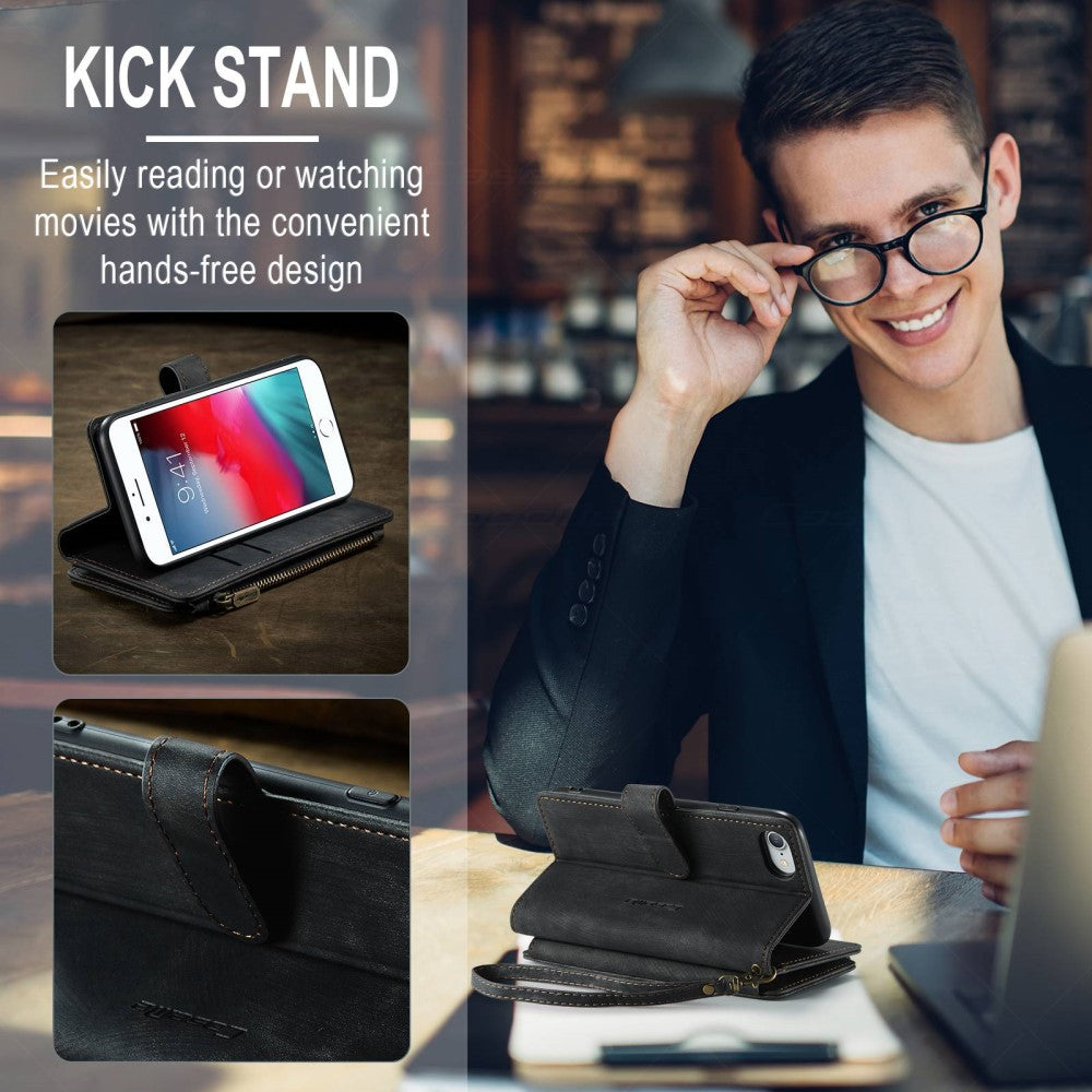 CaseMe étui portefeuille zippé pour iPhone 6 / 6S / iPhone 7 / iPhone SE 2020 / iPhone SE (2022) - Noir