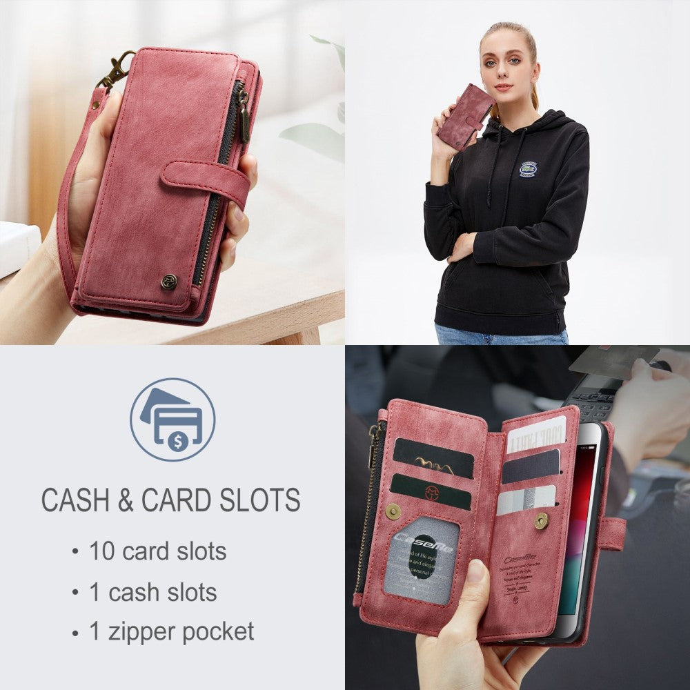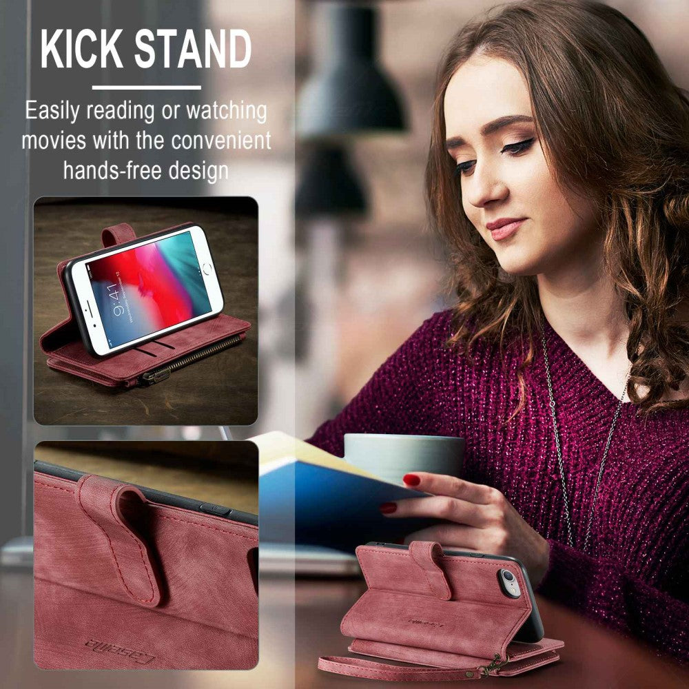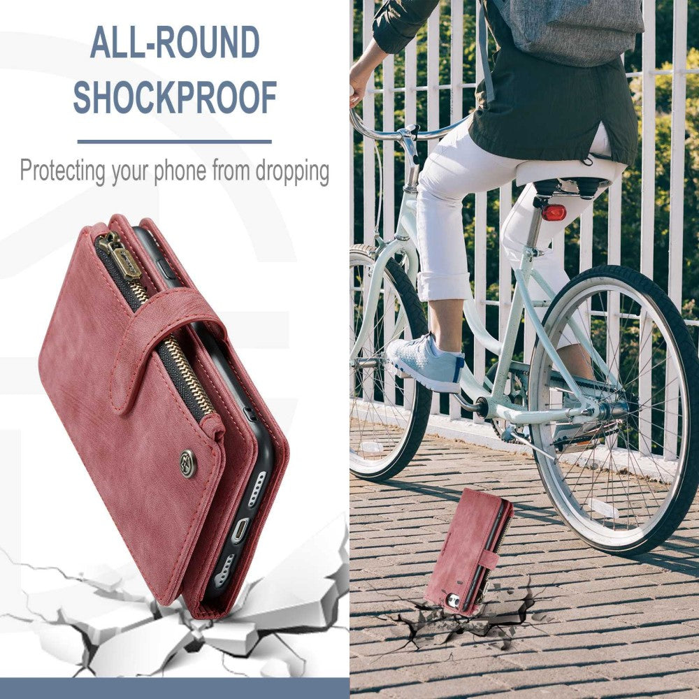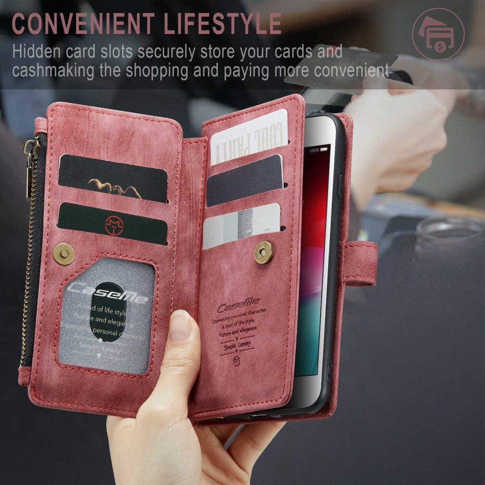 CaseMe iPhone 6 / 6S / iPhone 7 / iPhone SE 2020 / iPhone SE (2022) étui portefeuille zippé - Rouge