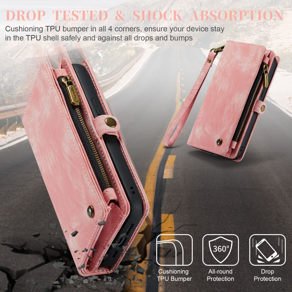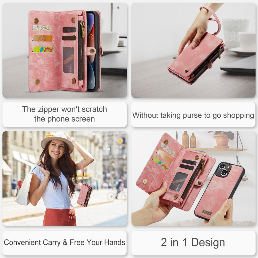 CaseMe Portefeuille à fermeture éclair pour iPhone 15 - Rose