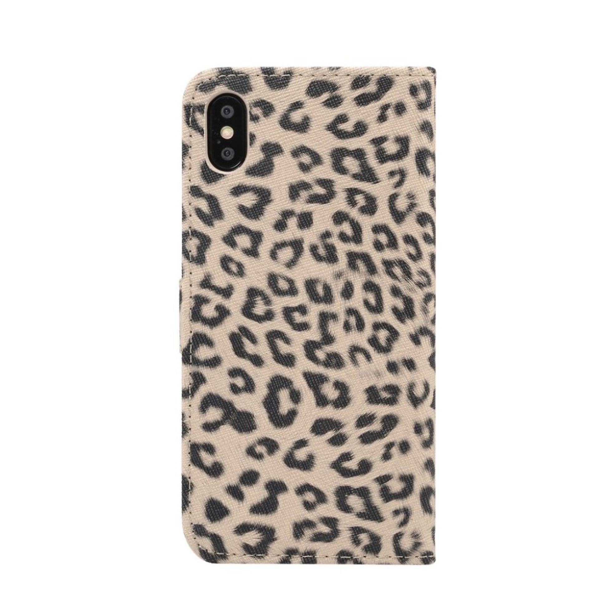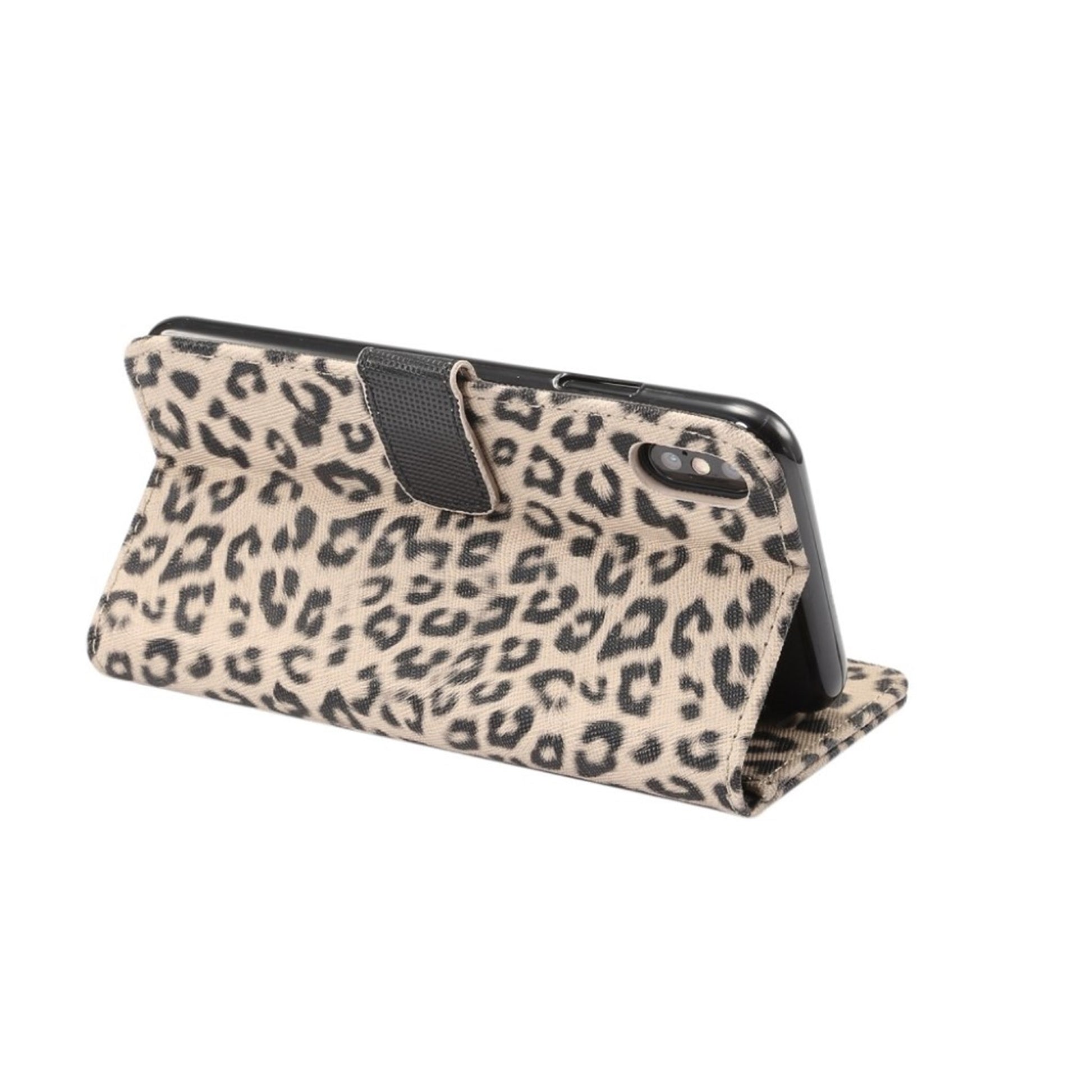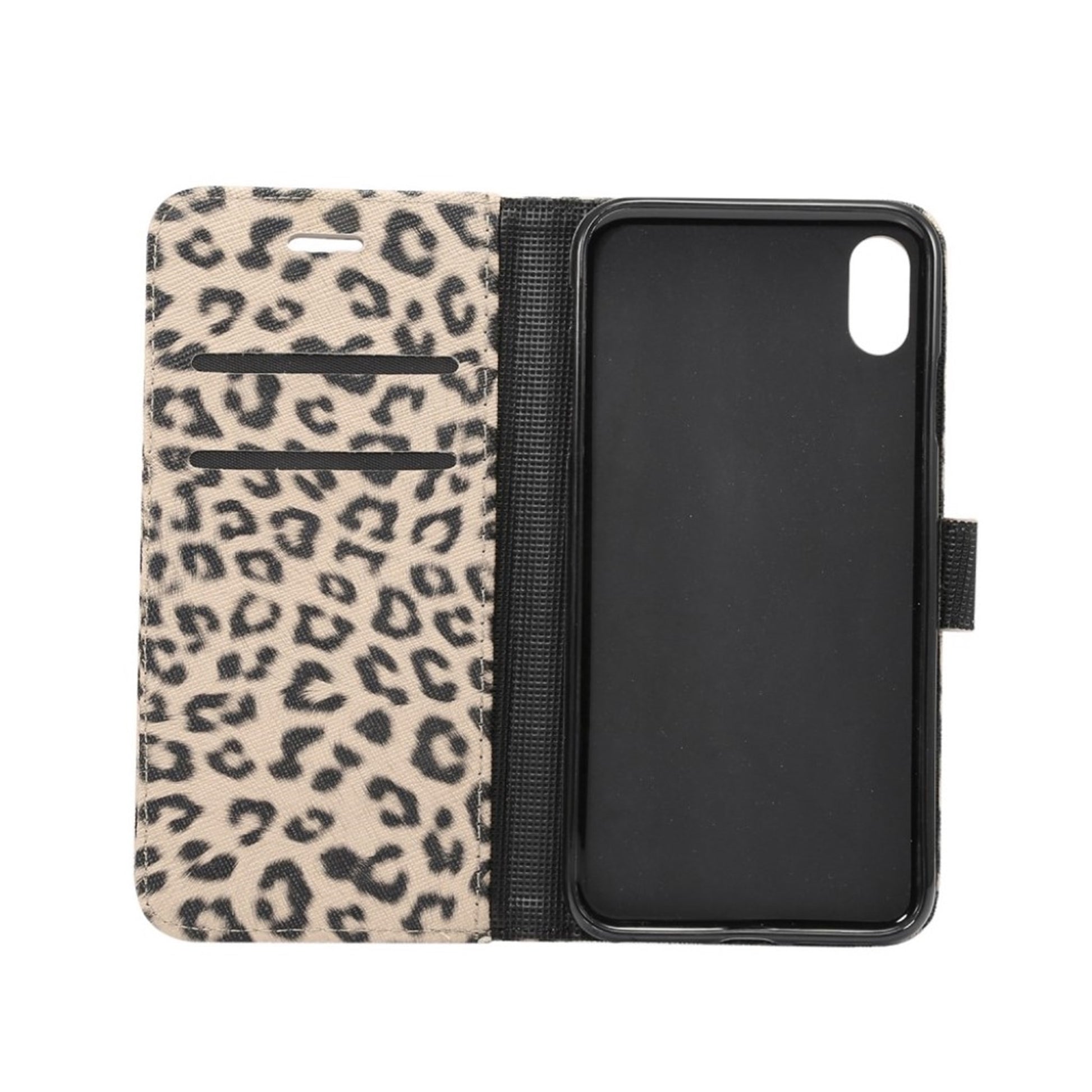 Coque à rabat en cuir à motif léopard pour iPhone Xr - Beige