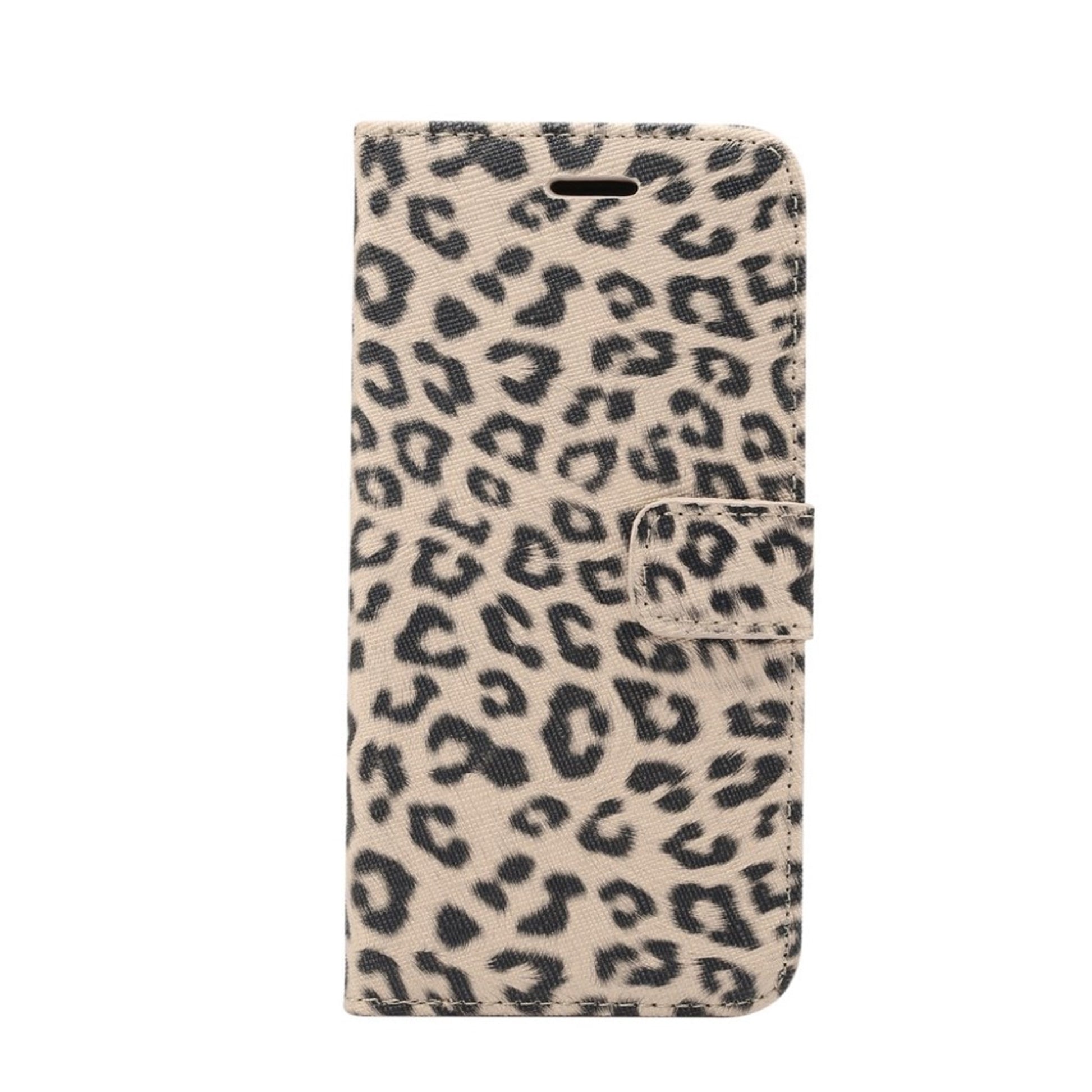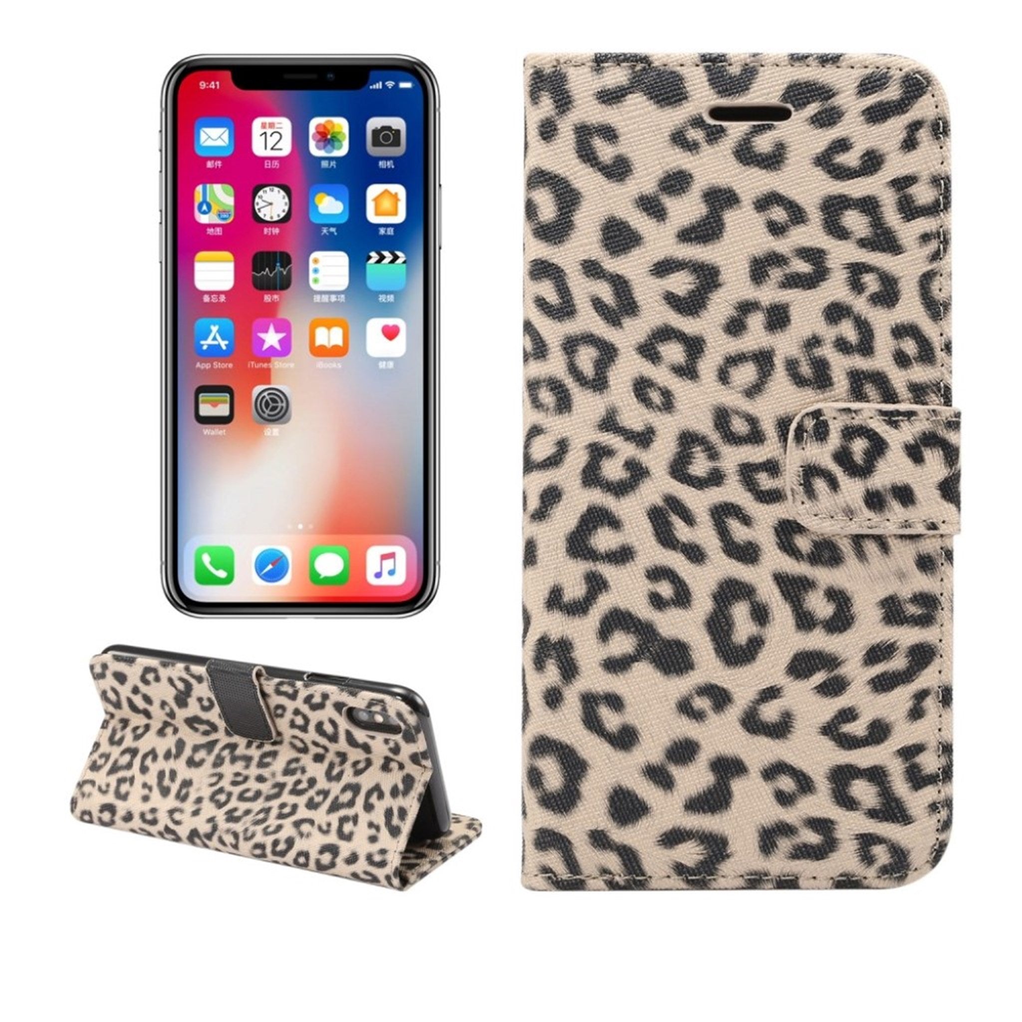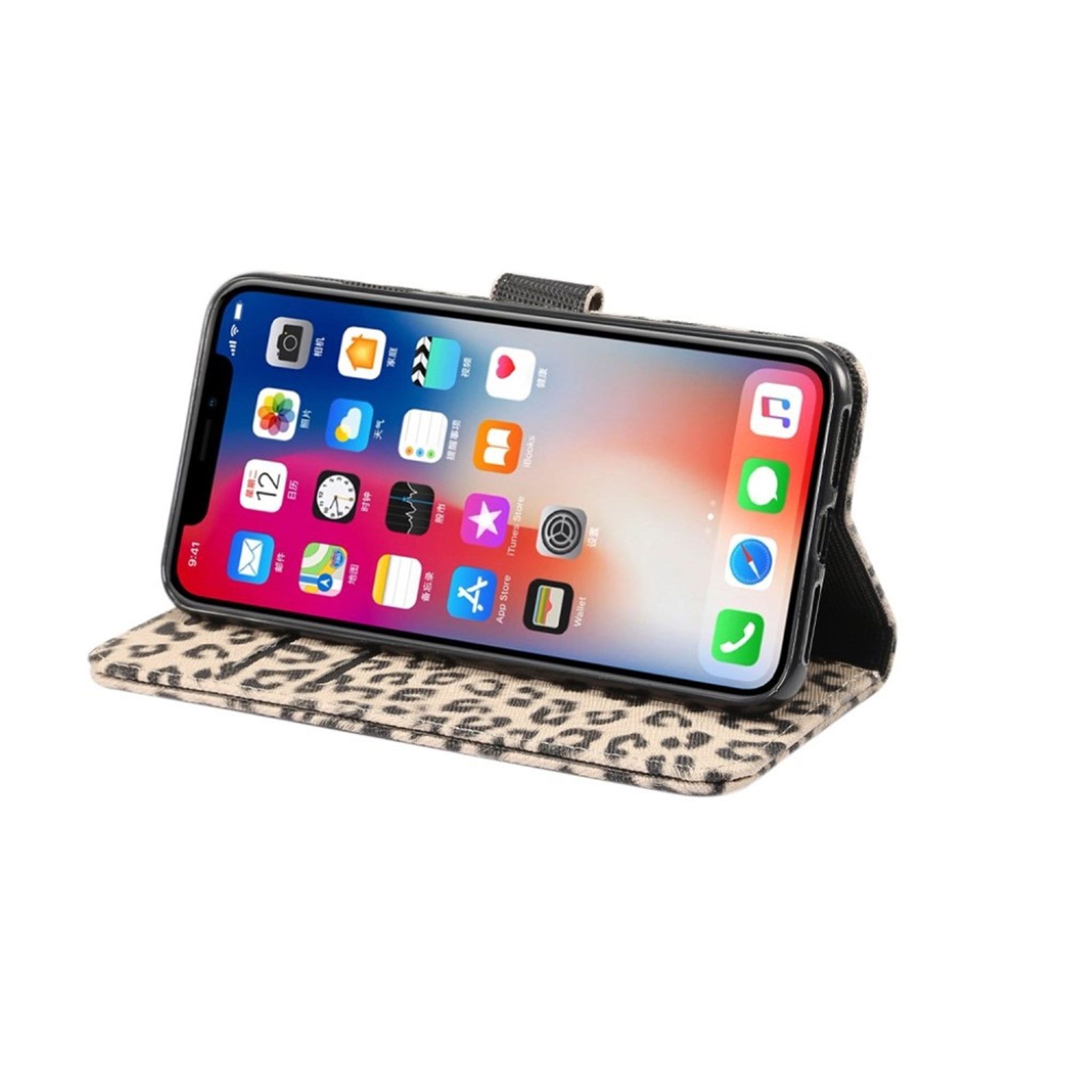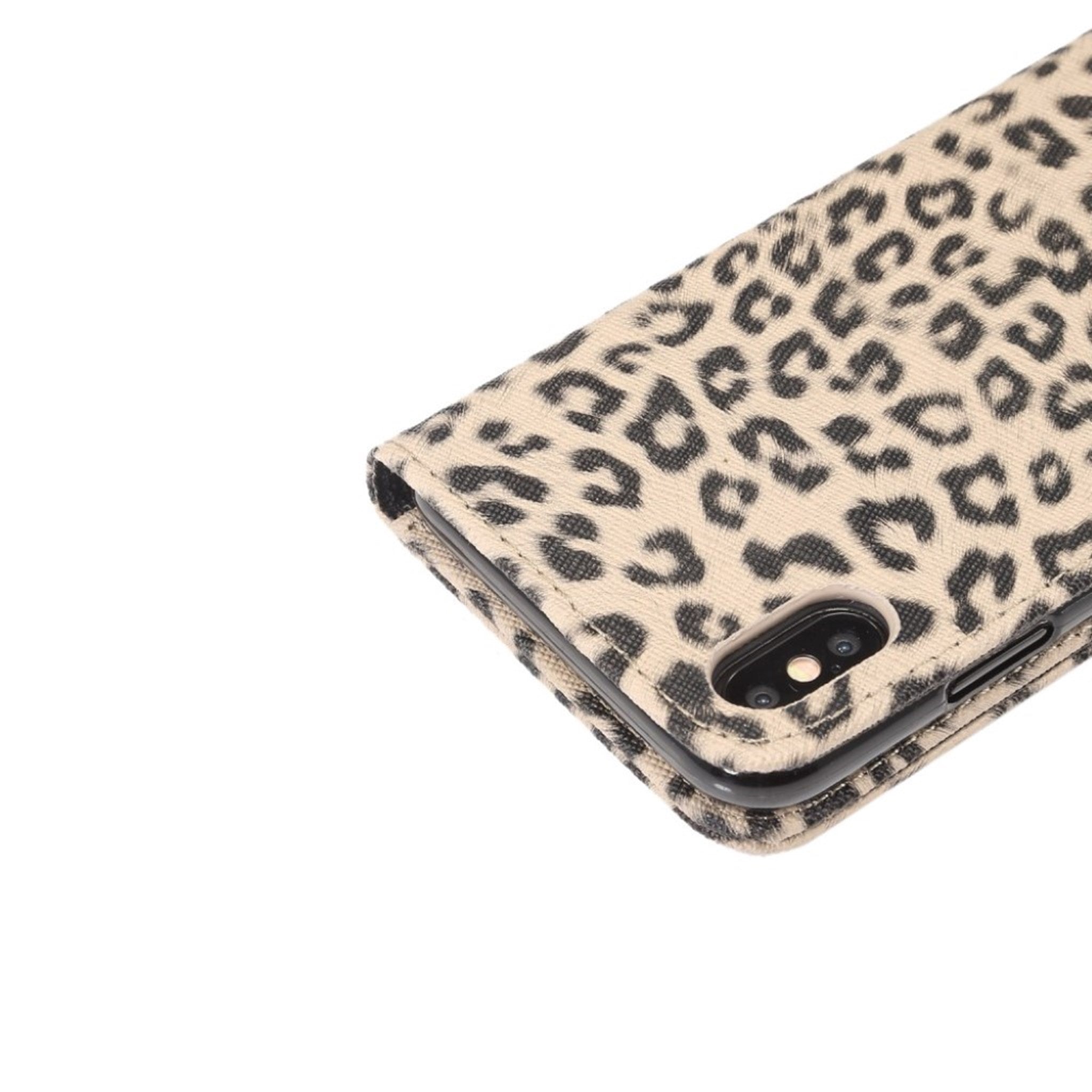 Coque à rabat en cuir à motif léopard pour iPhone Xr - Beige