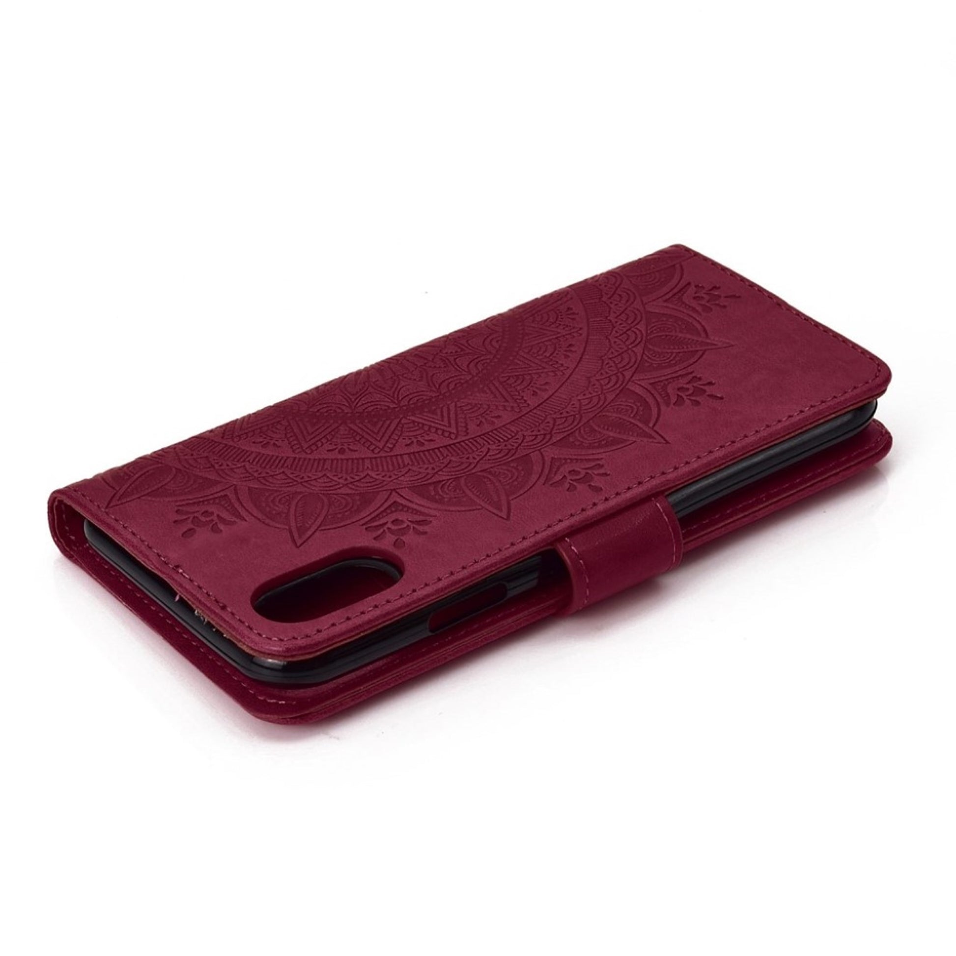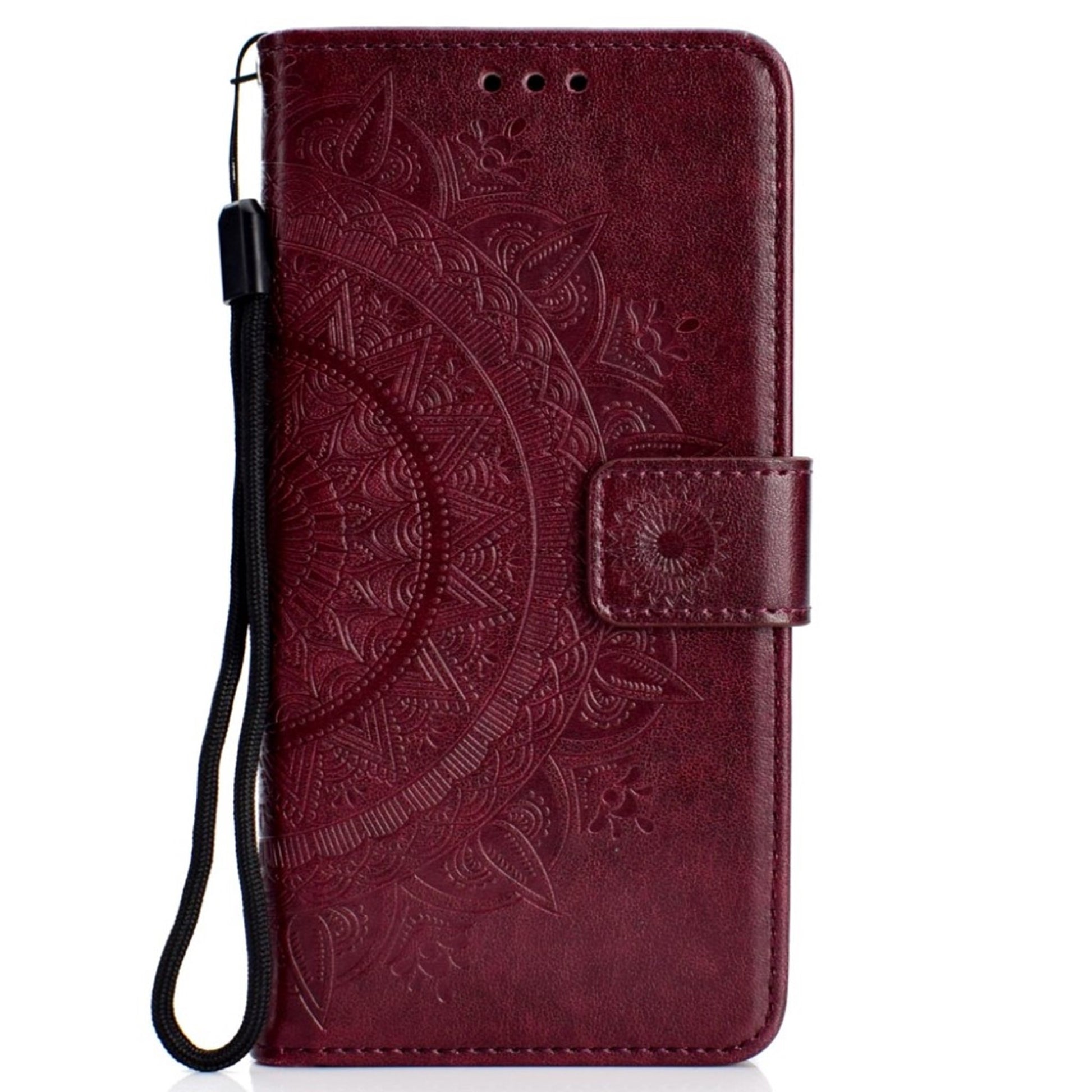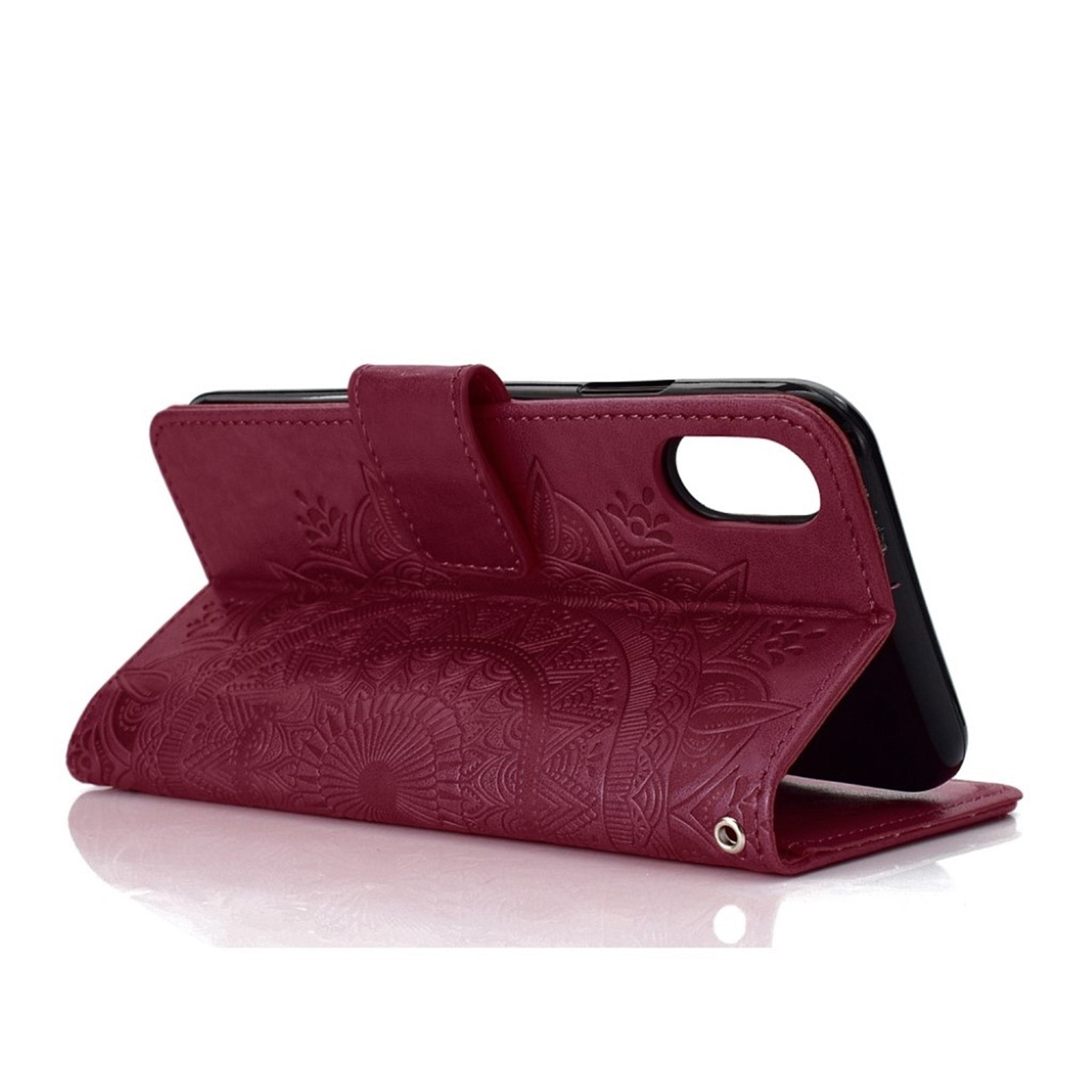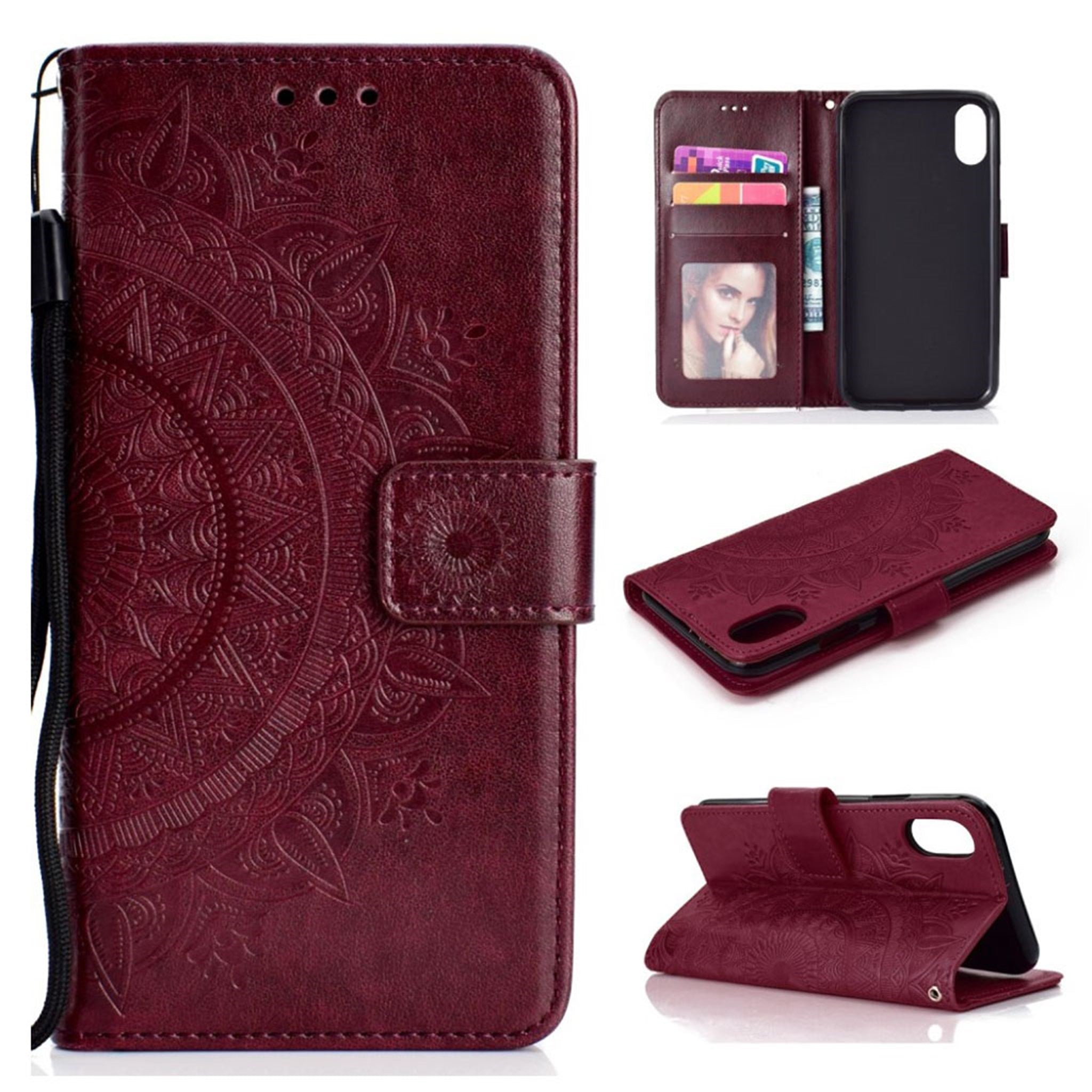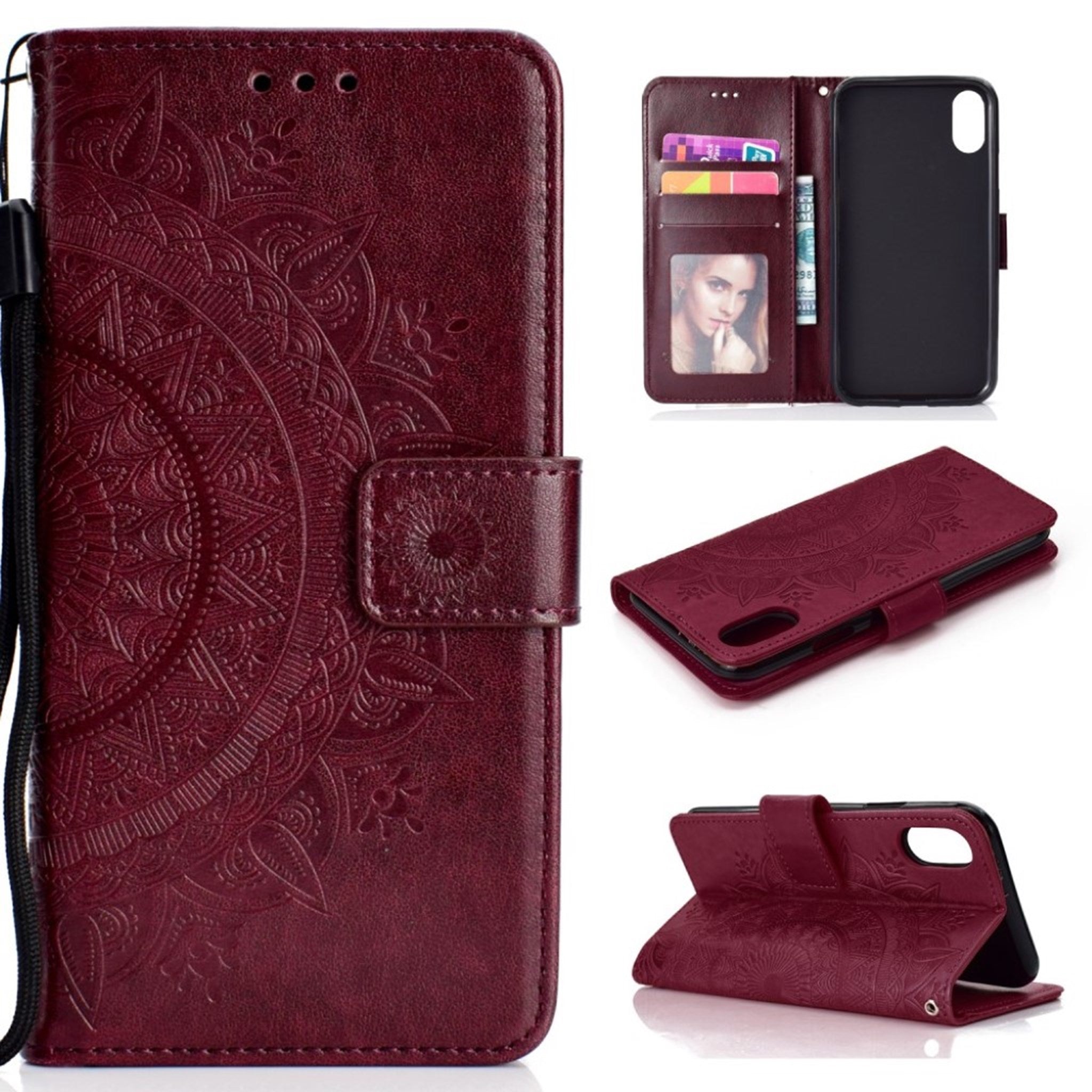 Coque à rabat en cuir à motif mandala imprimé pour iPhone Xr - Marron
