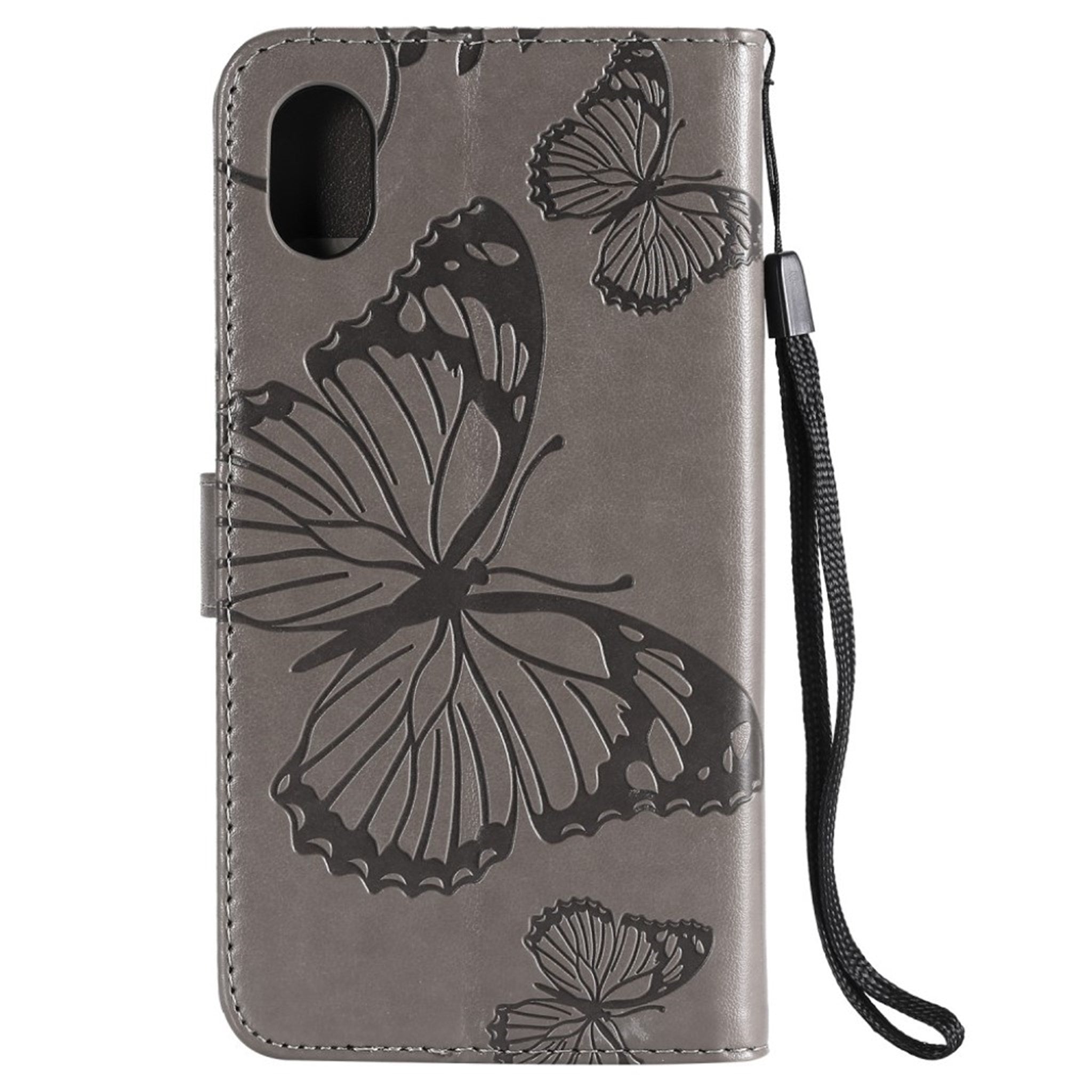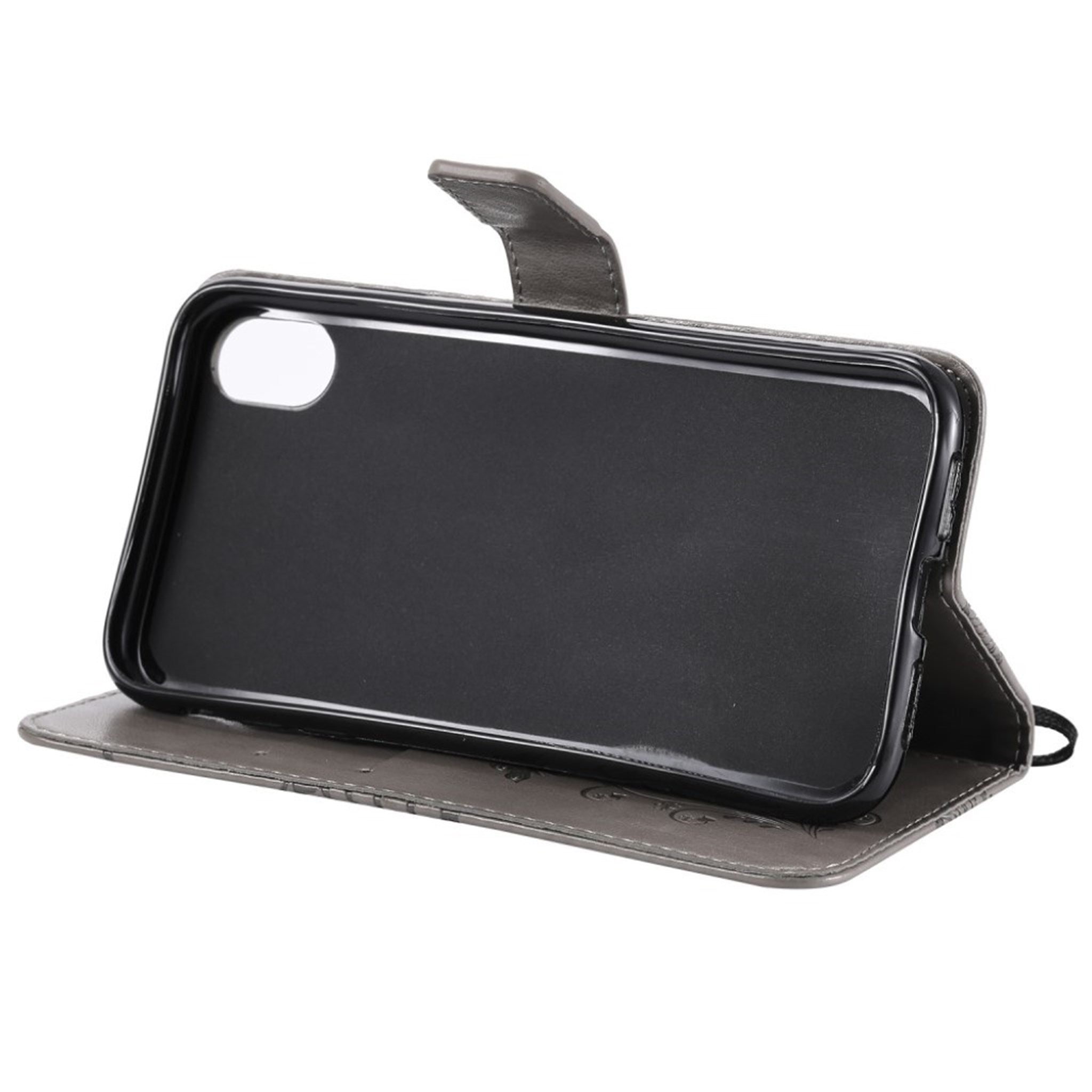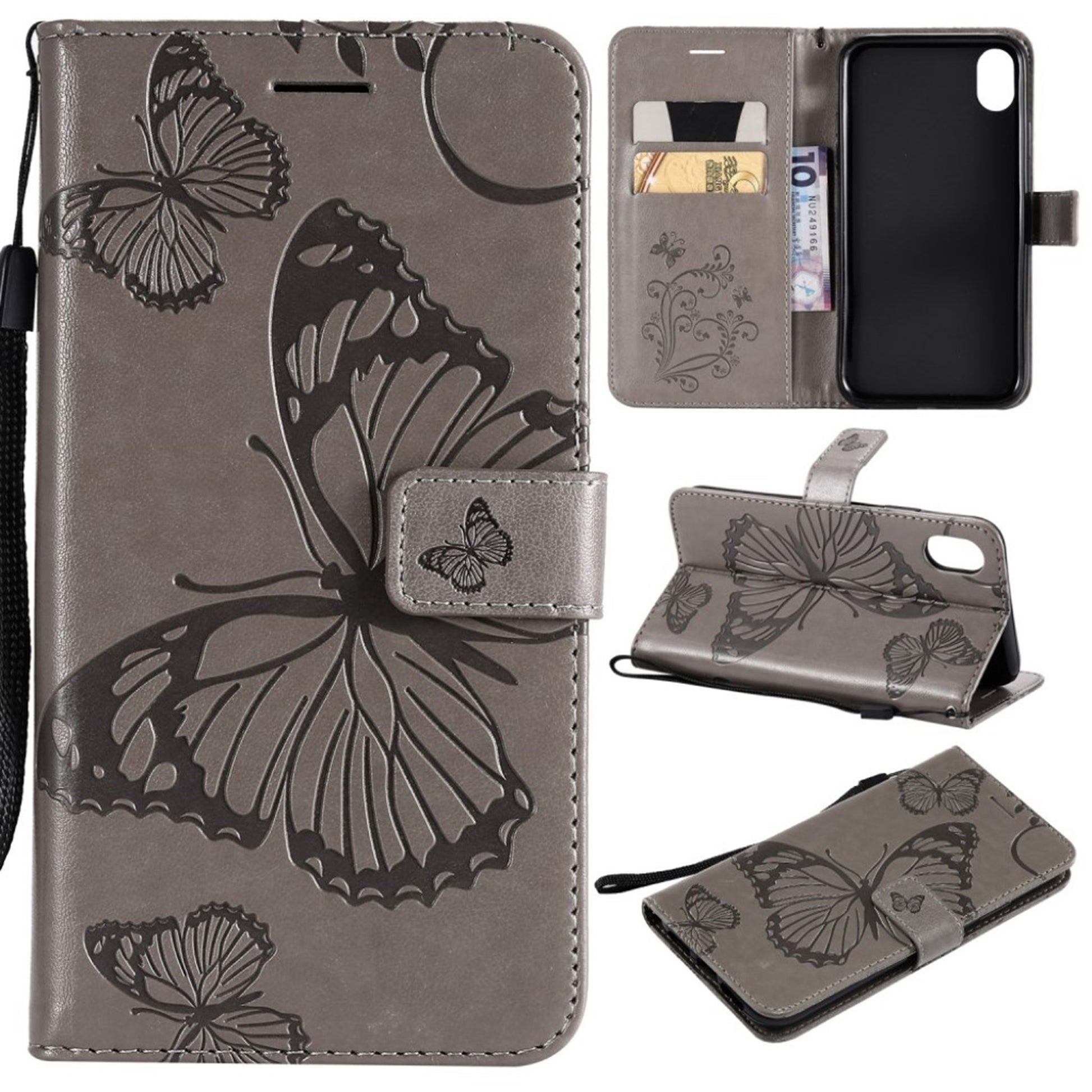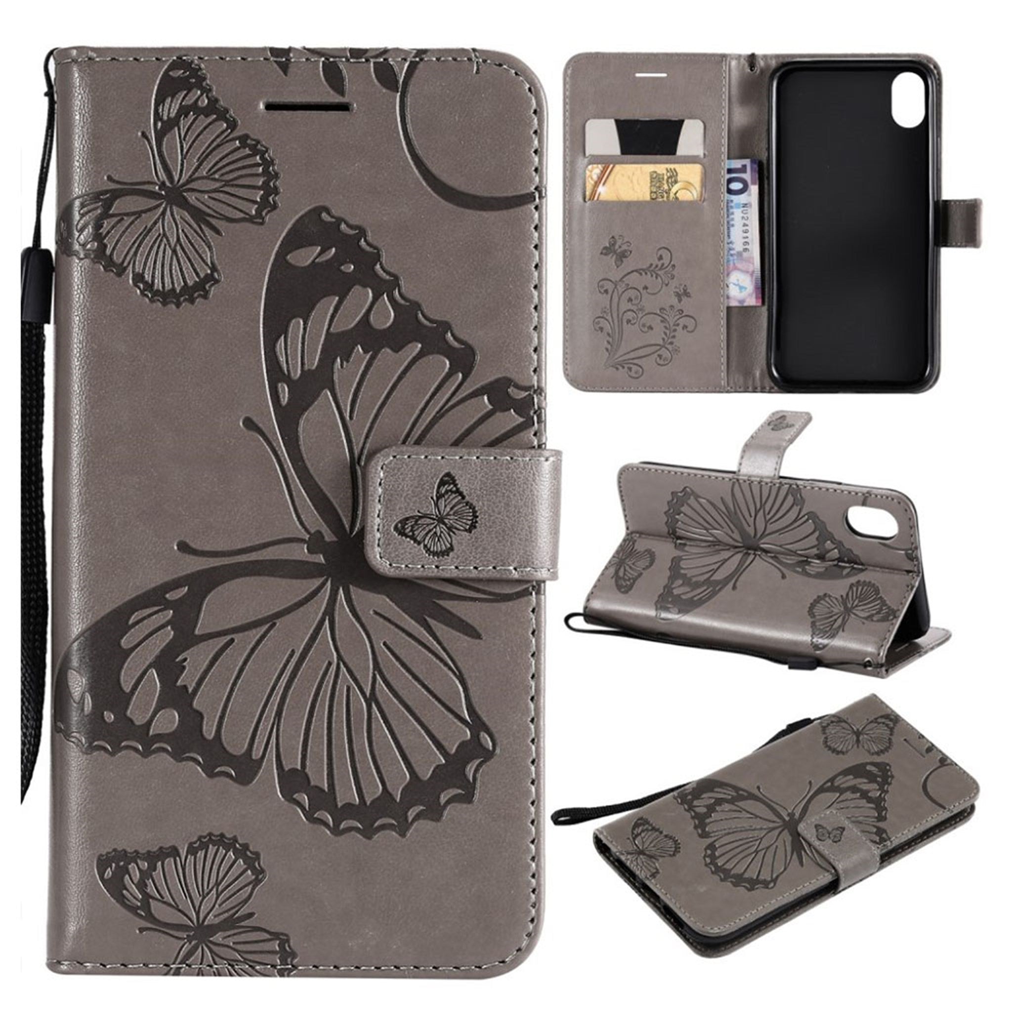 Coque à rabat en cuir papillon imprimé pour iPhone Xr - Gris
