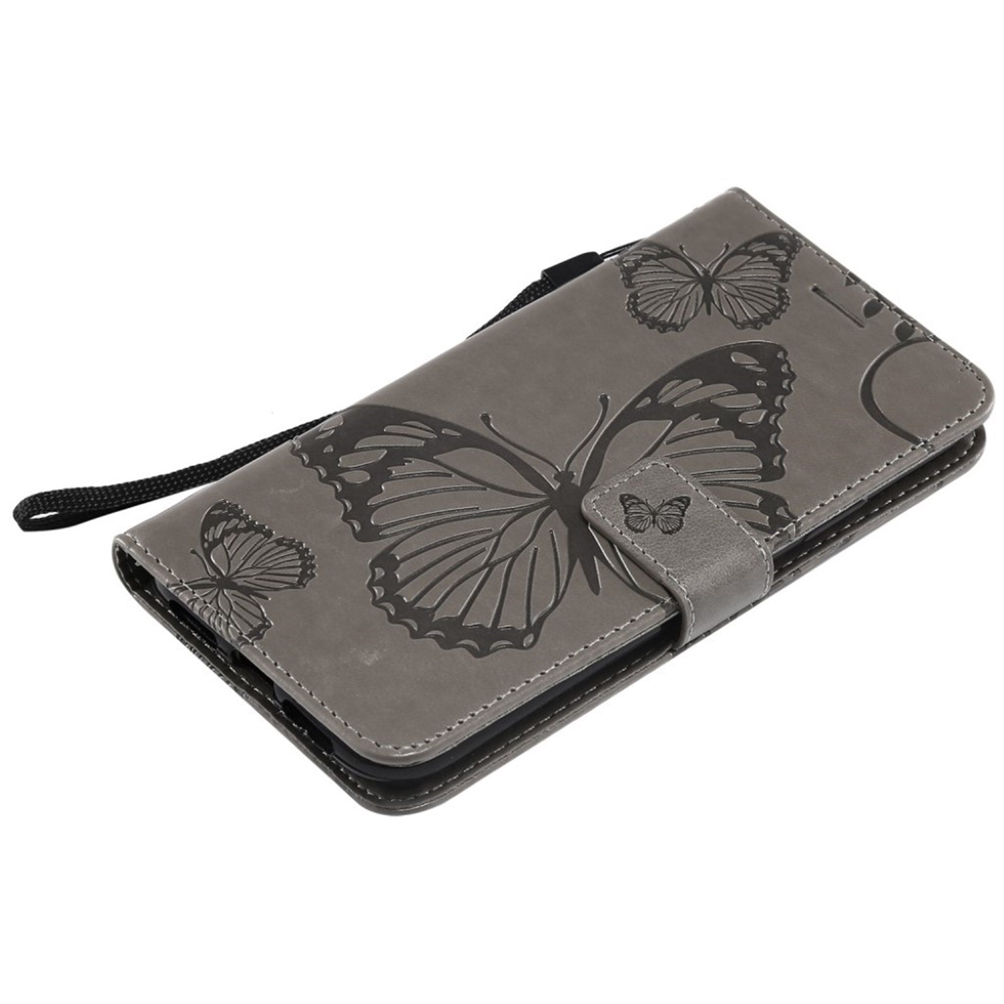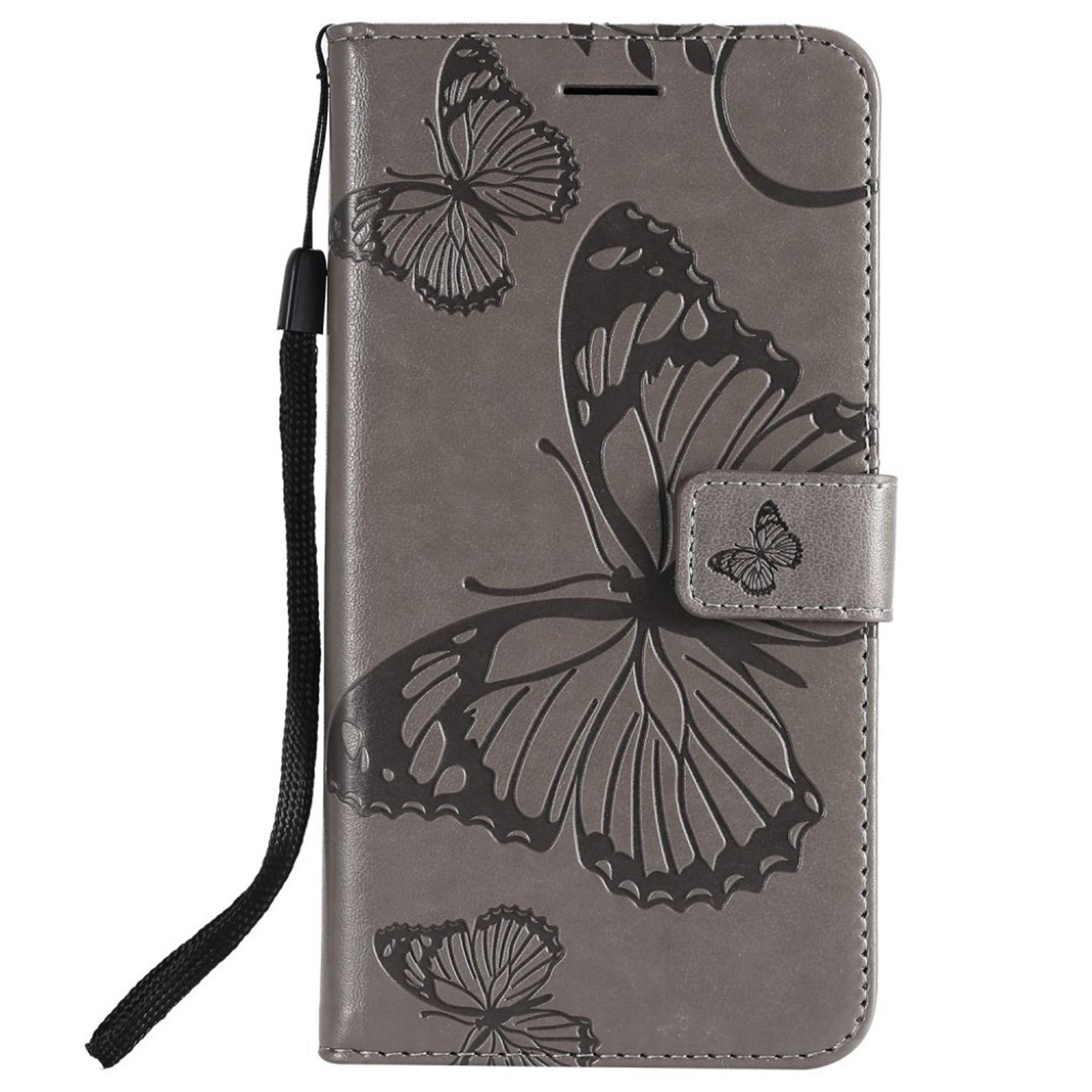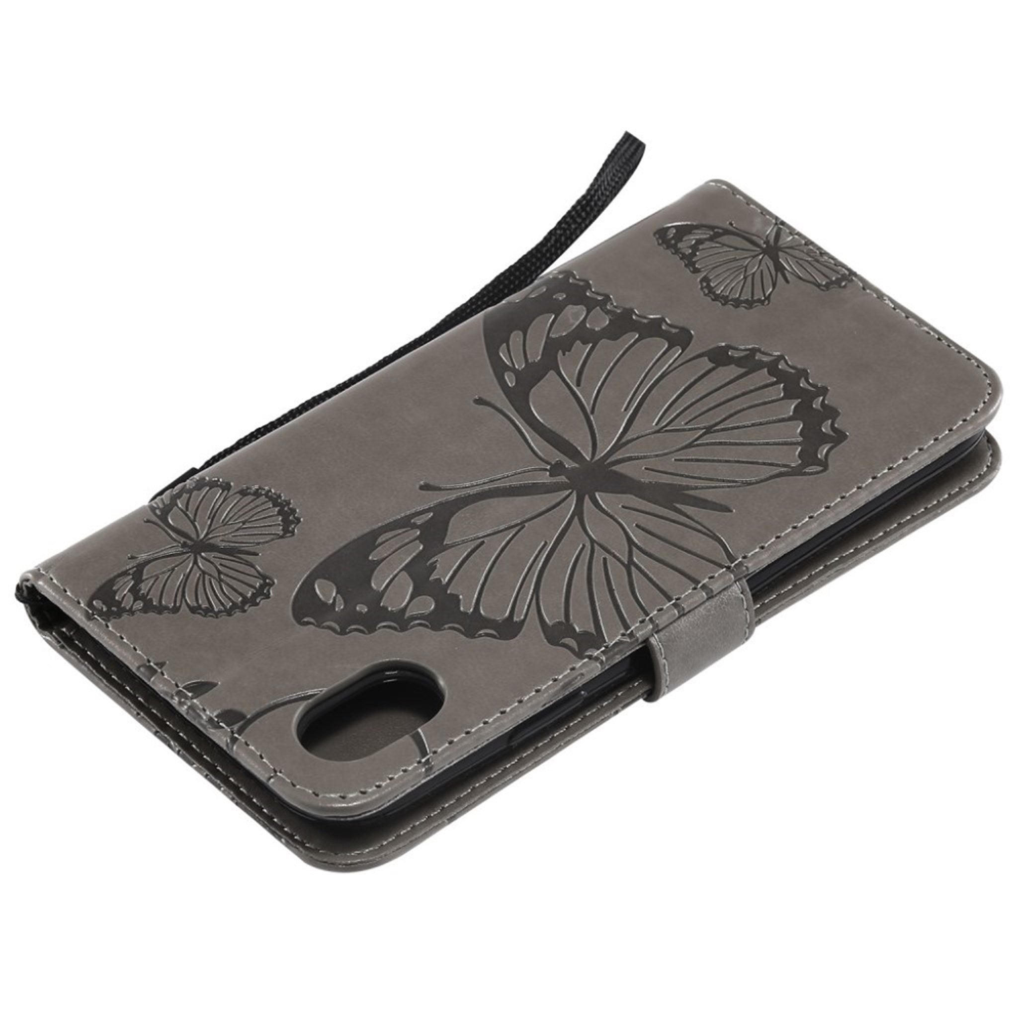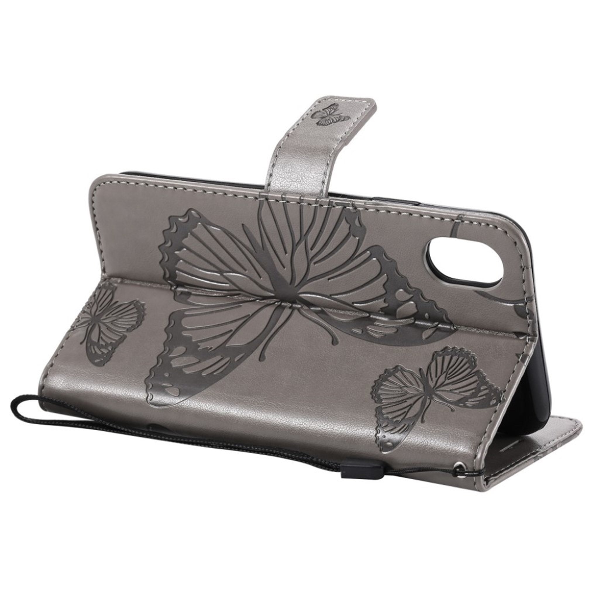 Coque à rabat en cuir papillon imprimé pour iPhone Xr - Gris