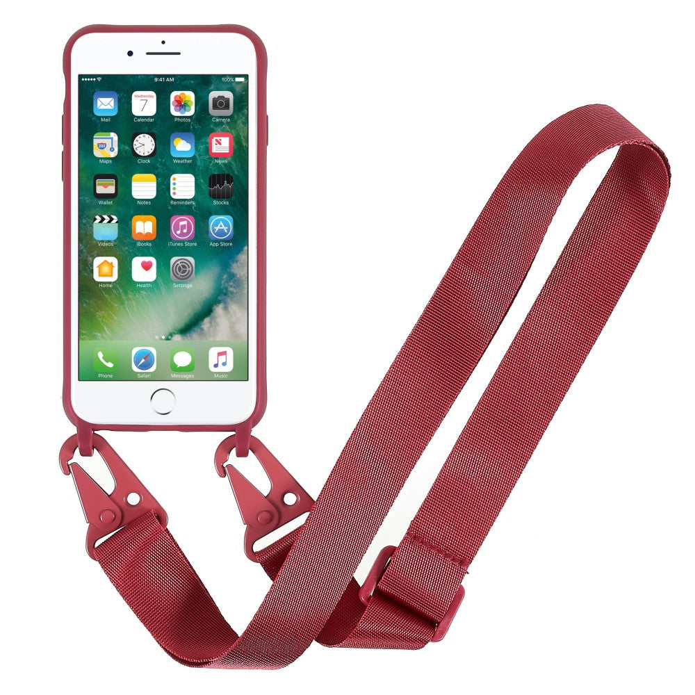 Coque fine en TPU avec une finition mate et une sangle réglable pour iPhone SE (2022) / SE 2020 / 8 / 7 - Rouge