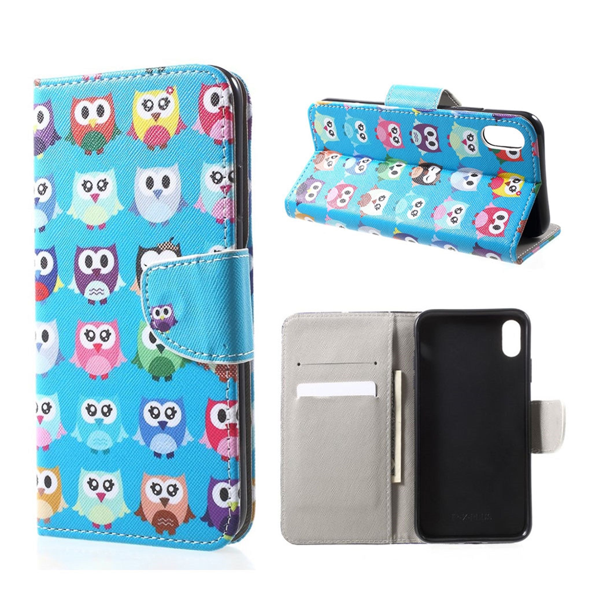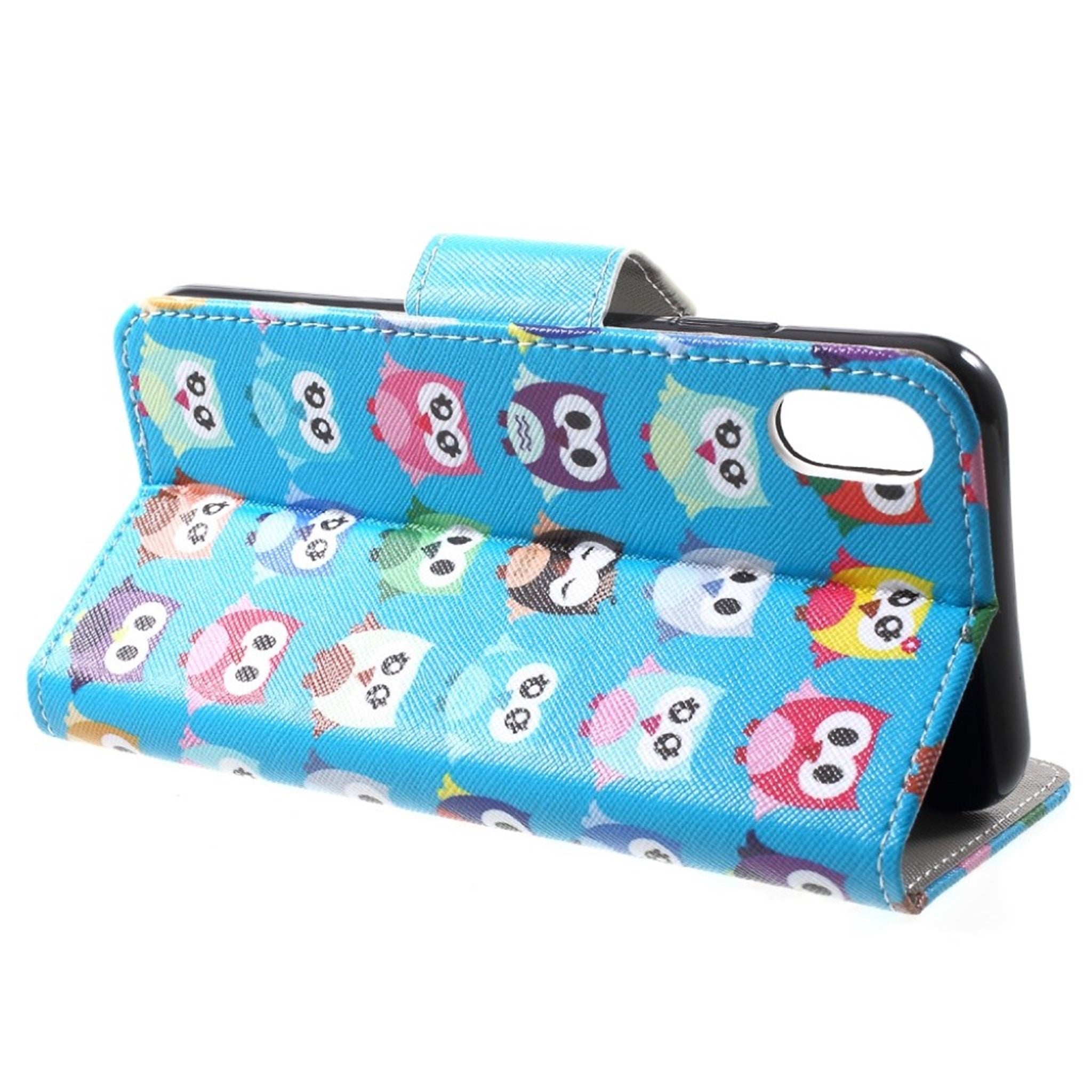 Coque flip case en cuir à impression de motifs pour iPhone Xr - Plusieurs Hiboux