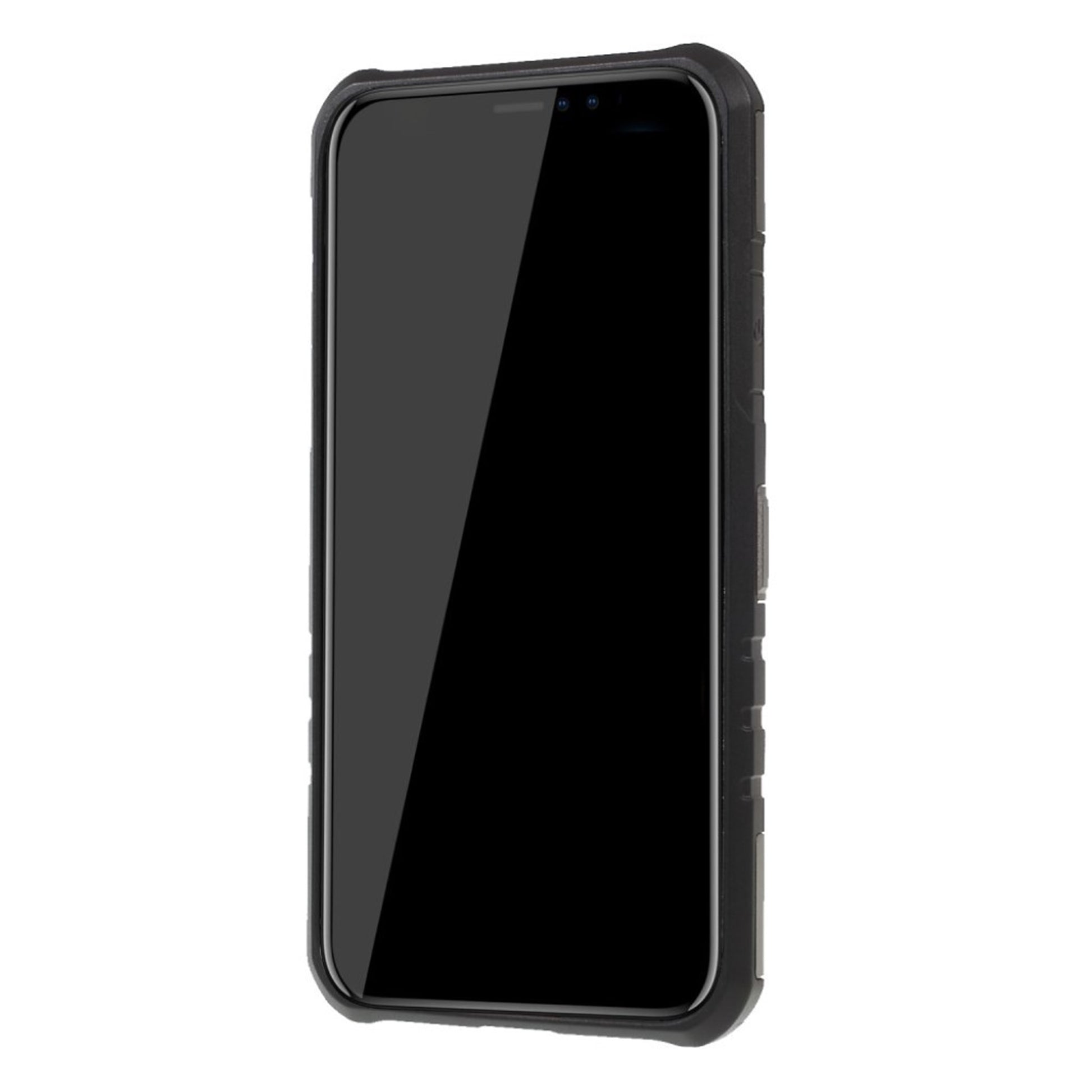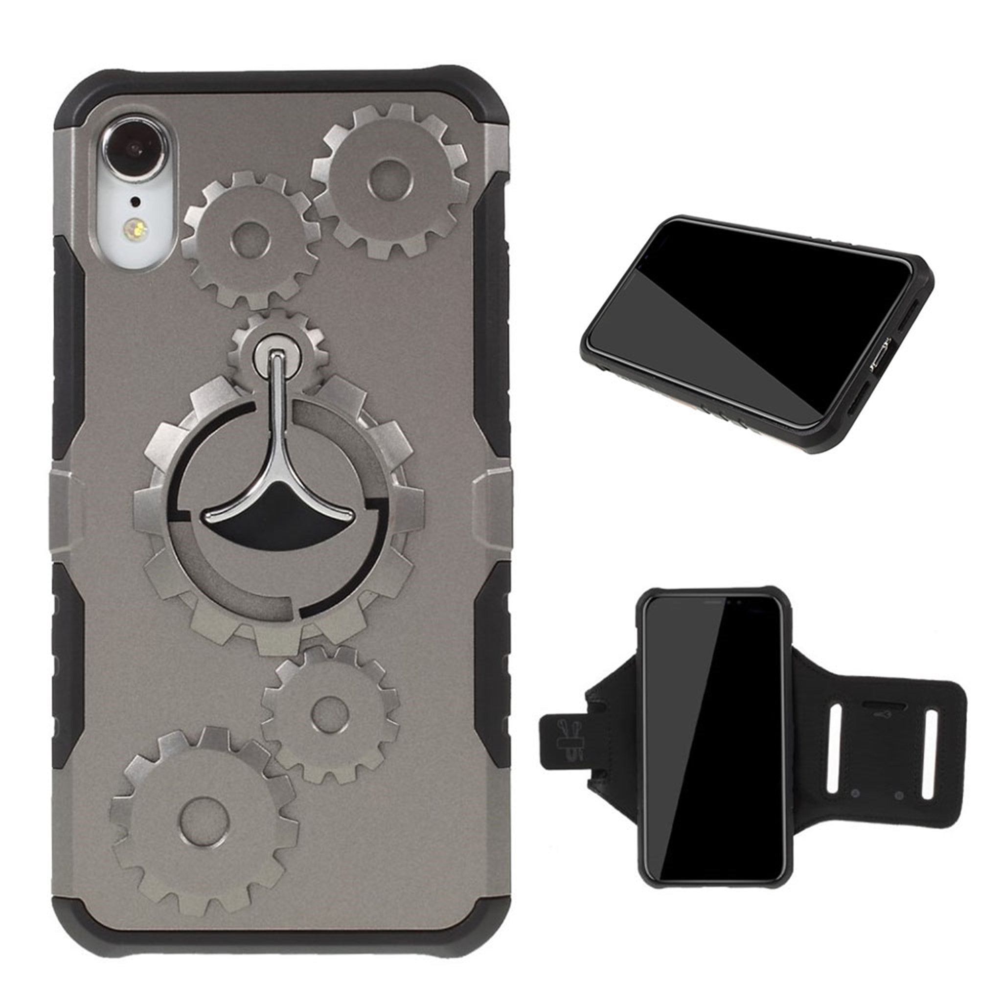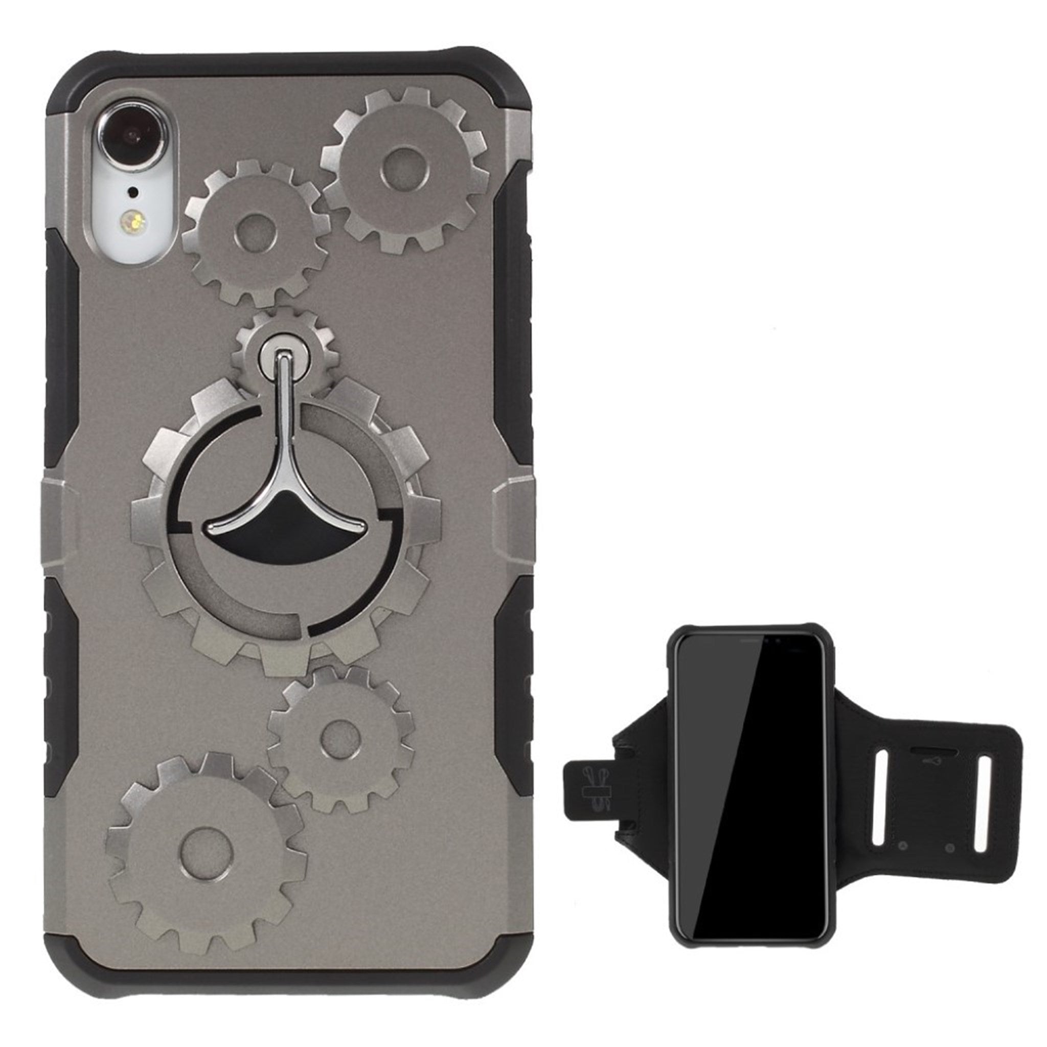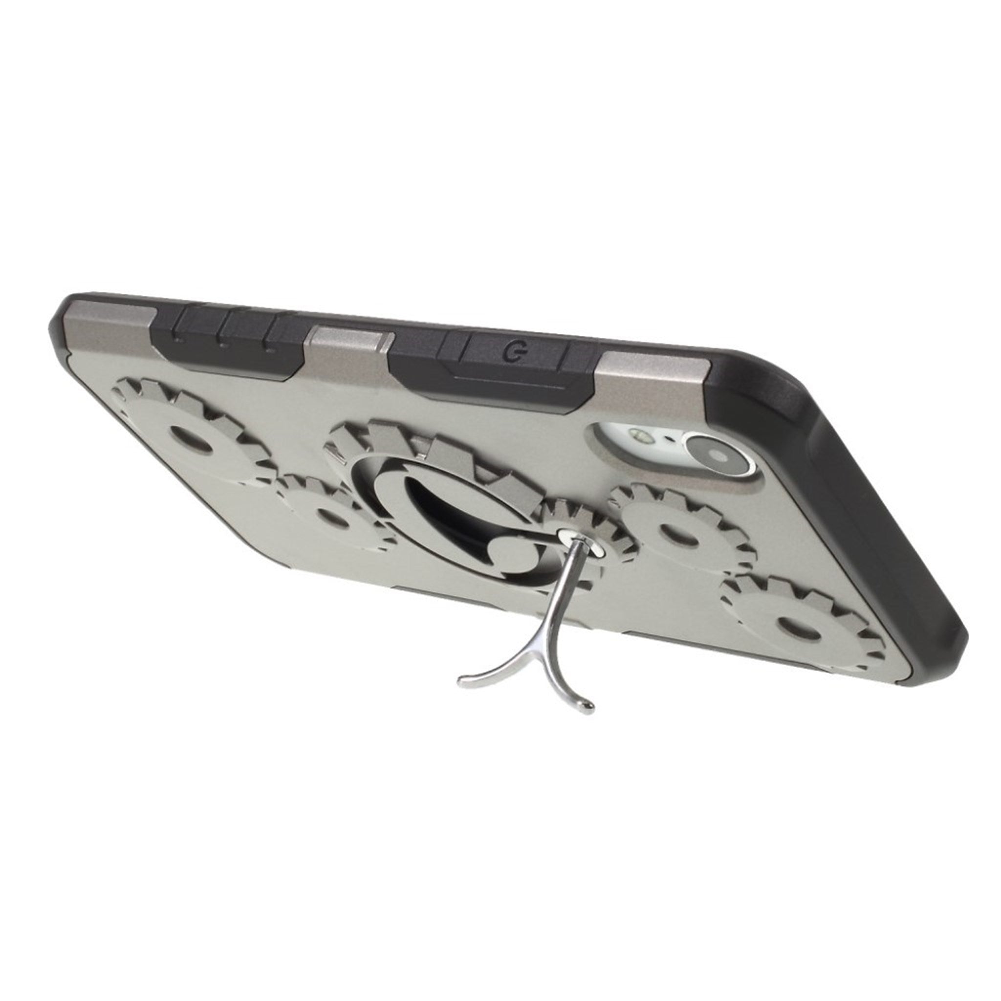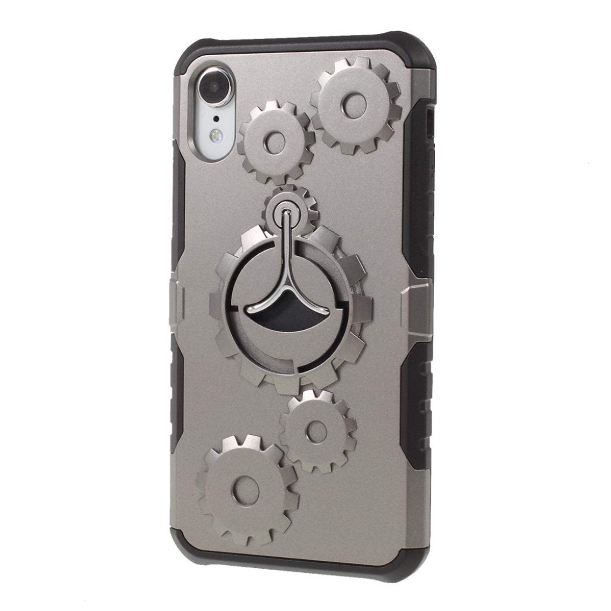 Coque hybride iPhone Xr gear pattern kickstand - Gris