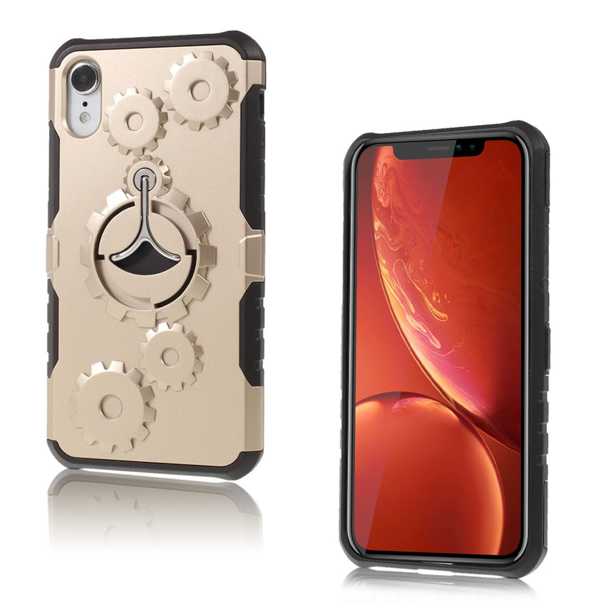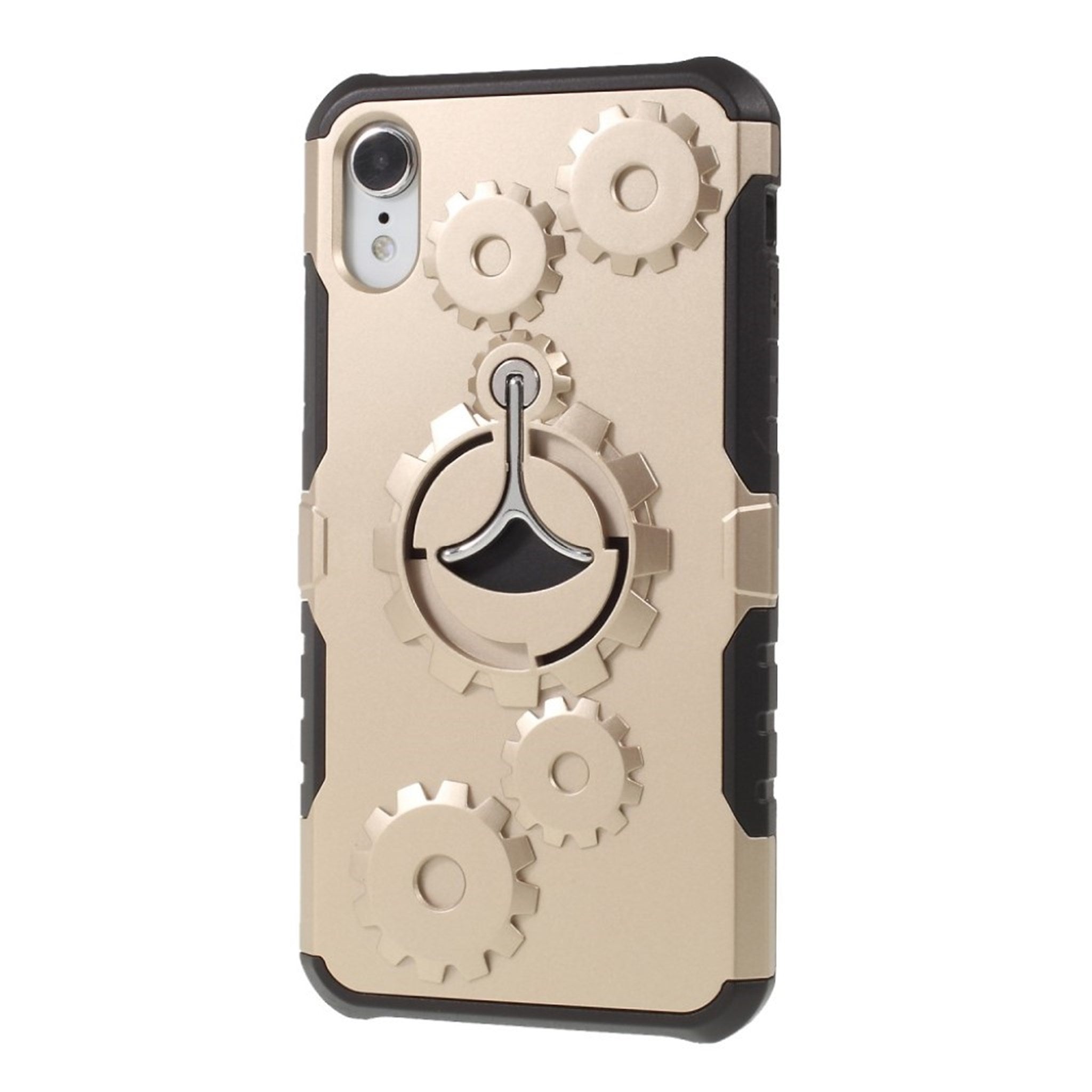 Coque hybride kickstand à engrenage mécanique pour iPhone Xr - Or