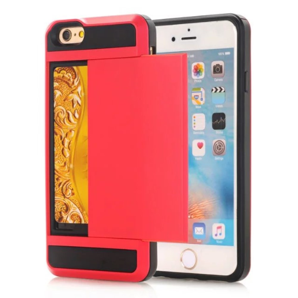 Coque hybride PC + TPU anti-rayures porte-cartes coulissantes pour iPhone SE (2020)/SE (2022)/8/7 4.7 pouces- Noir