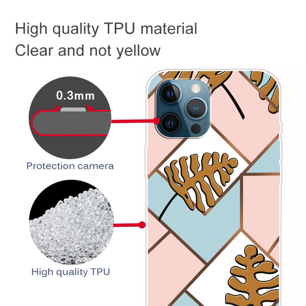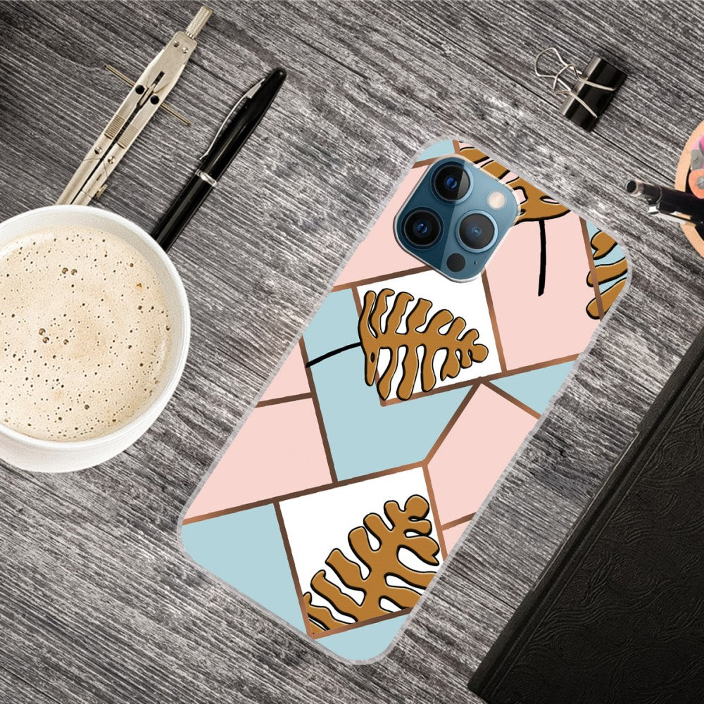 Coque Marble pour iPhone 15 Pro - Toon Leaves En Rose Et Bleu