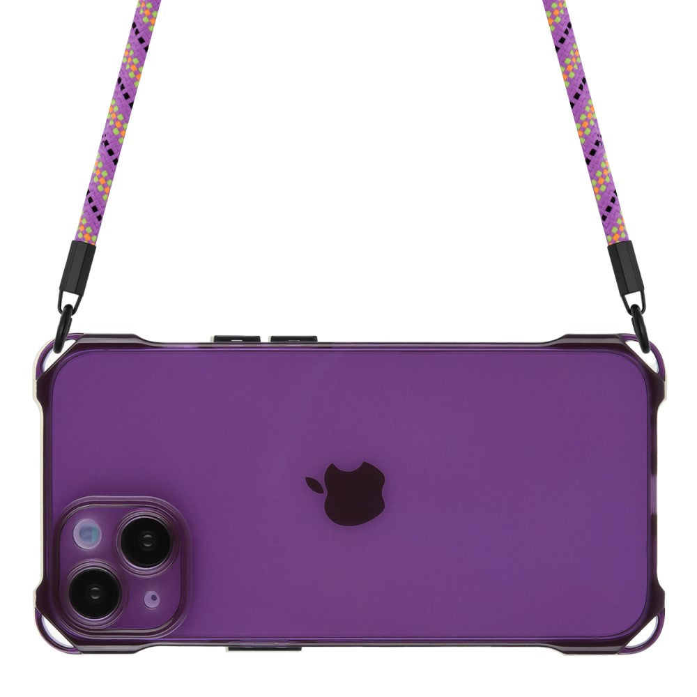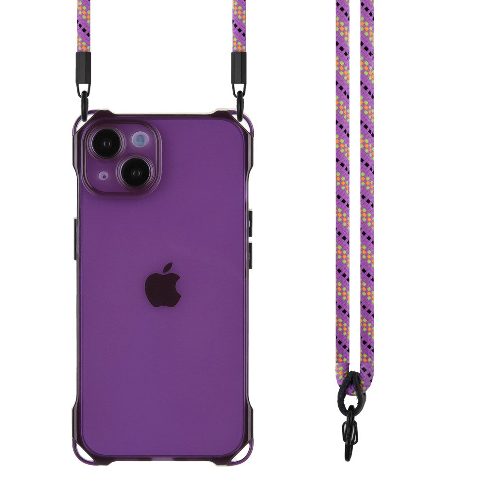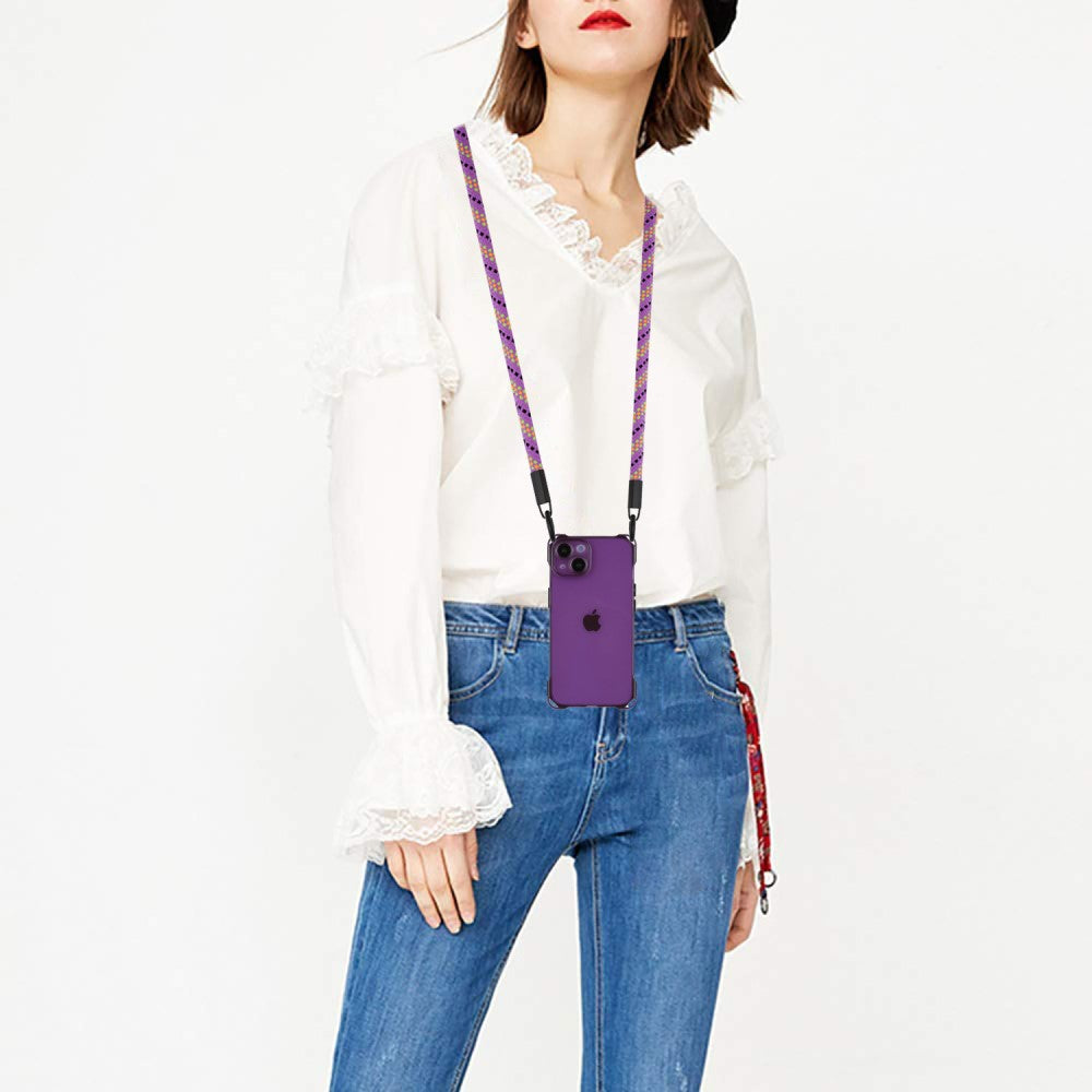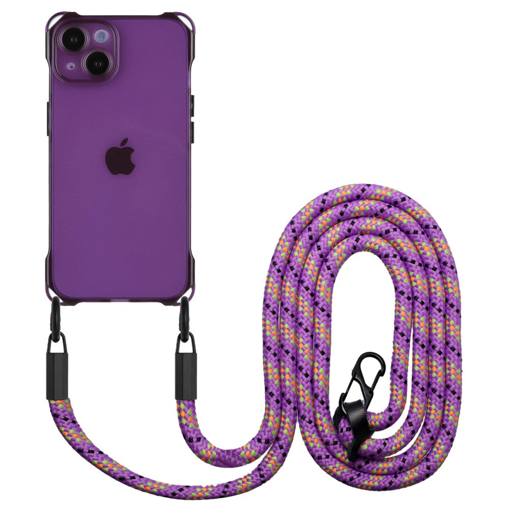 Coque TPU transparente pour iPhone 14 avec protection contre les chutes et cablee d'accrochage - Violet