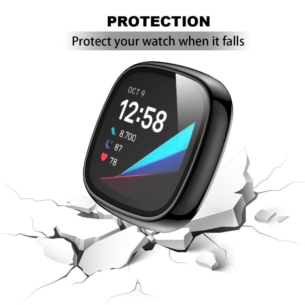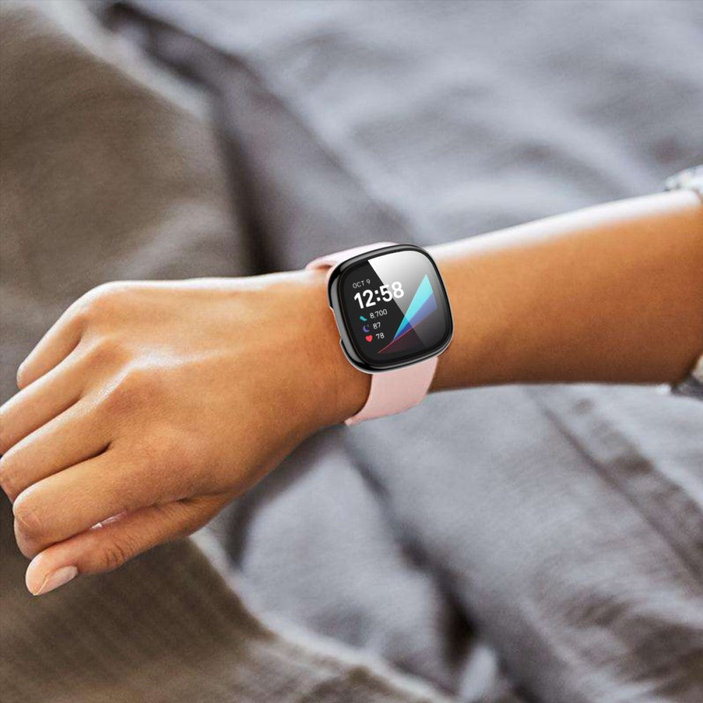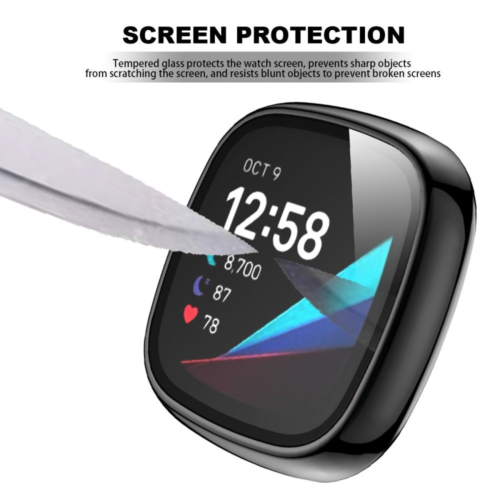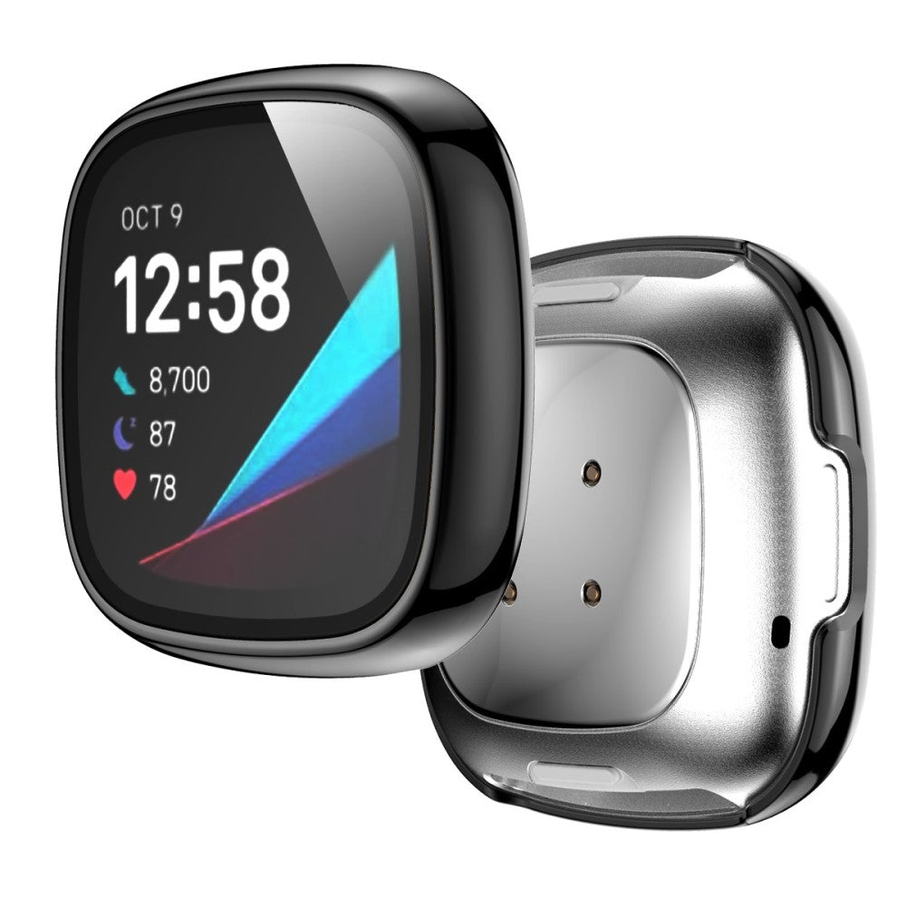 Couvercle de galvanoplastie Fitbit Sense / Versa 3 avec verre trempé - Noir