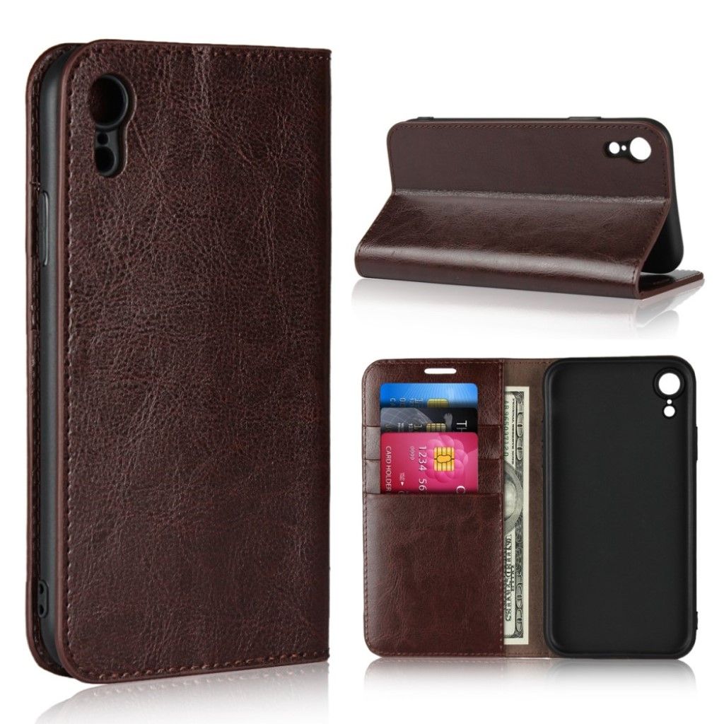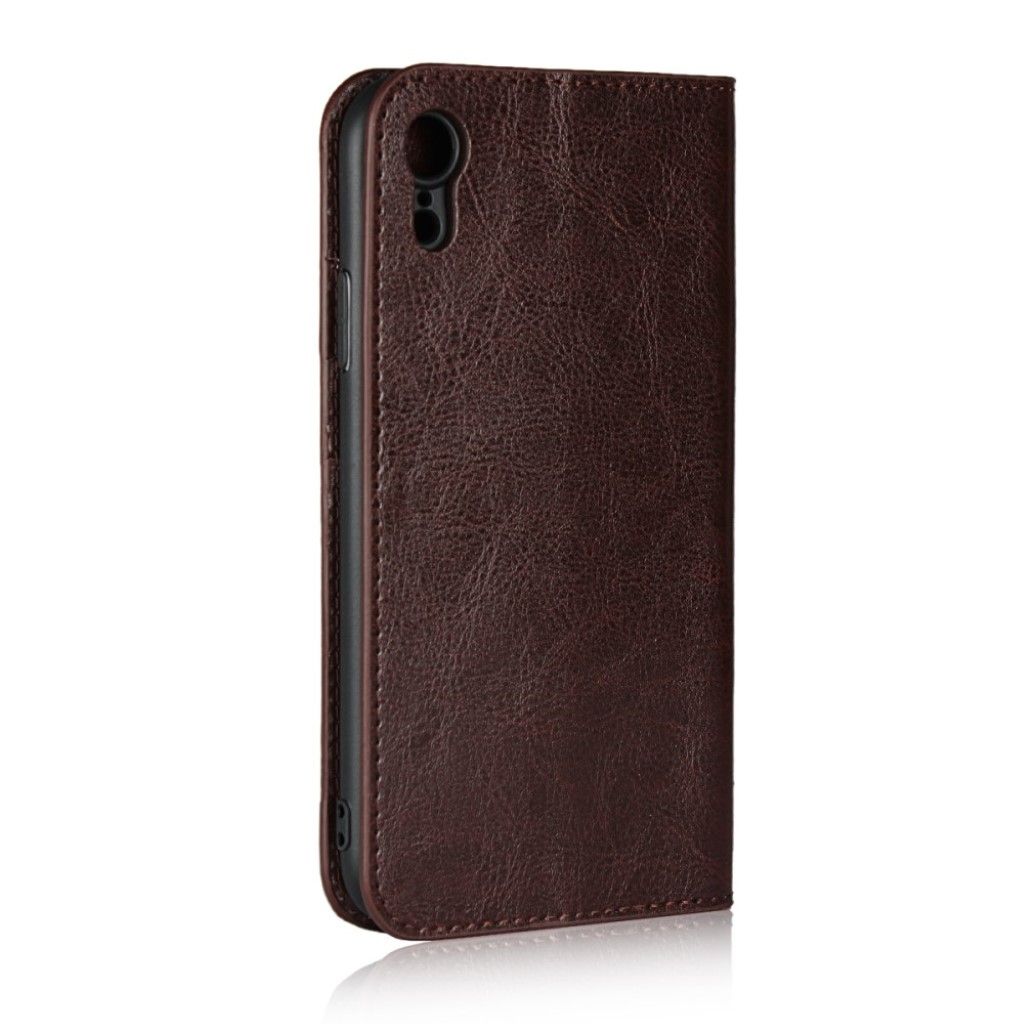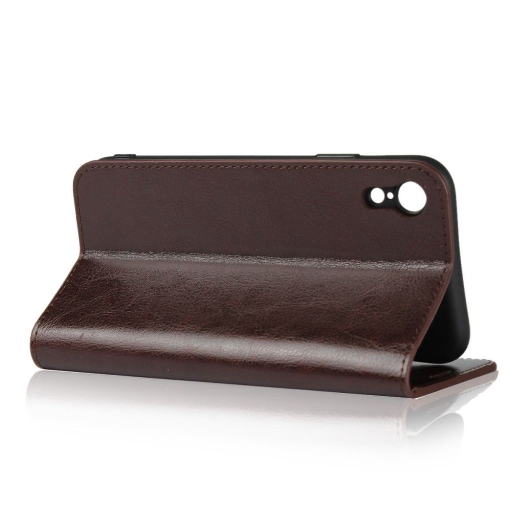 Crazy Horse iPhone Xr étui à rabat en cuir véritable - Café