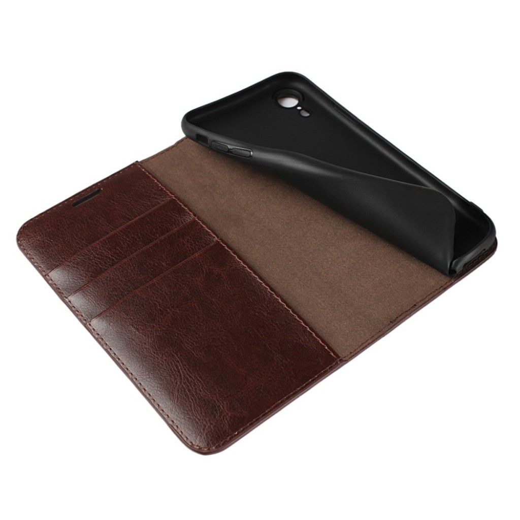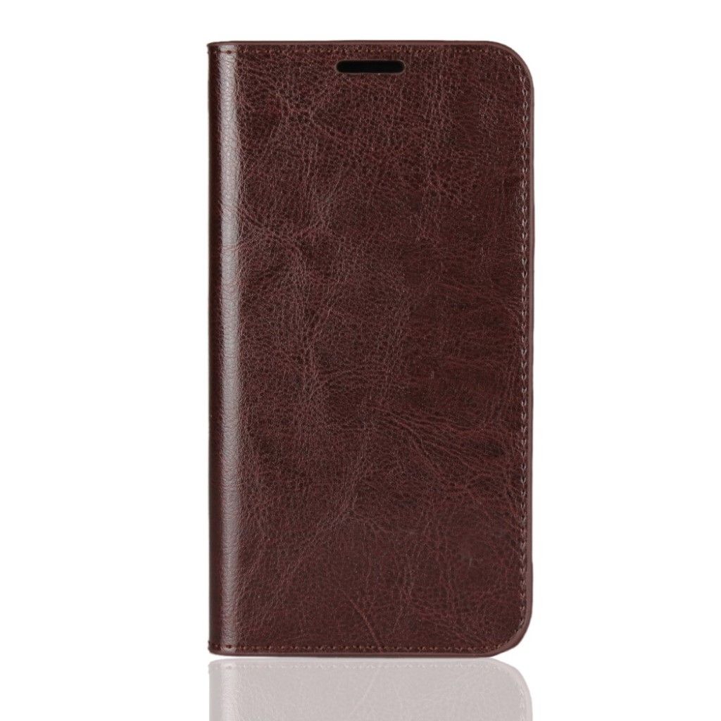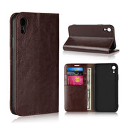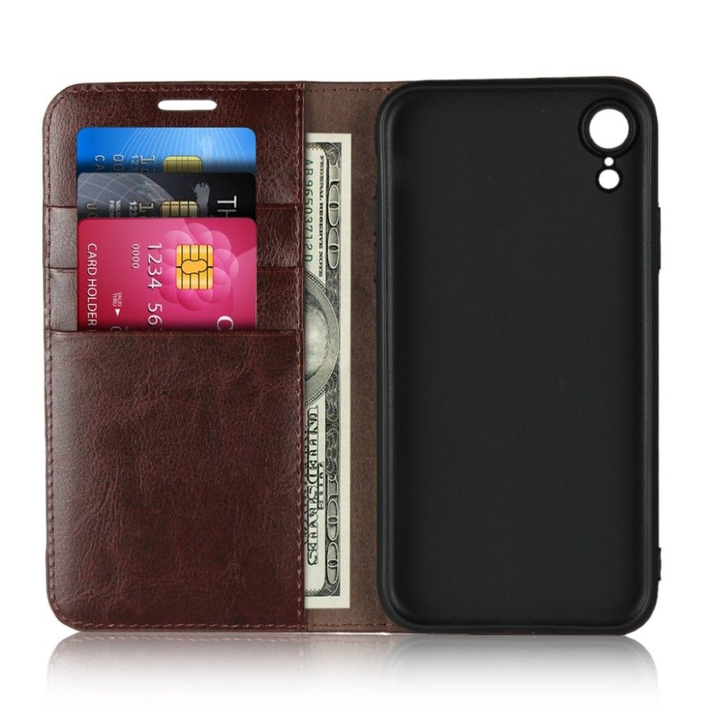 Crazy Horse iPhone Xr étui à rabat en cuir véritable - Café