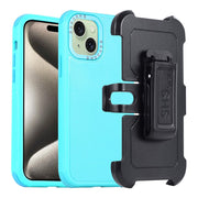 Étui à clip ceinture double couche pour iPhone 15 Plus - Bleu+Bleu Ciel