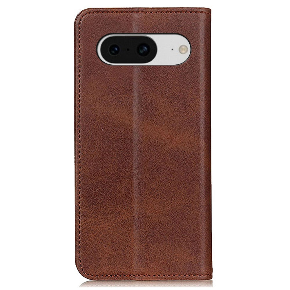 Étui à rabat en cuir véritable style portefeuille pour Google Pixel 8 - Café