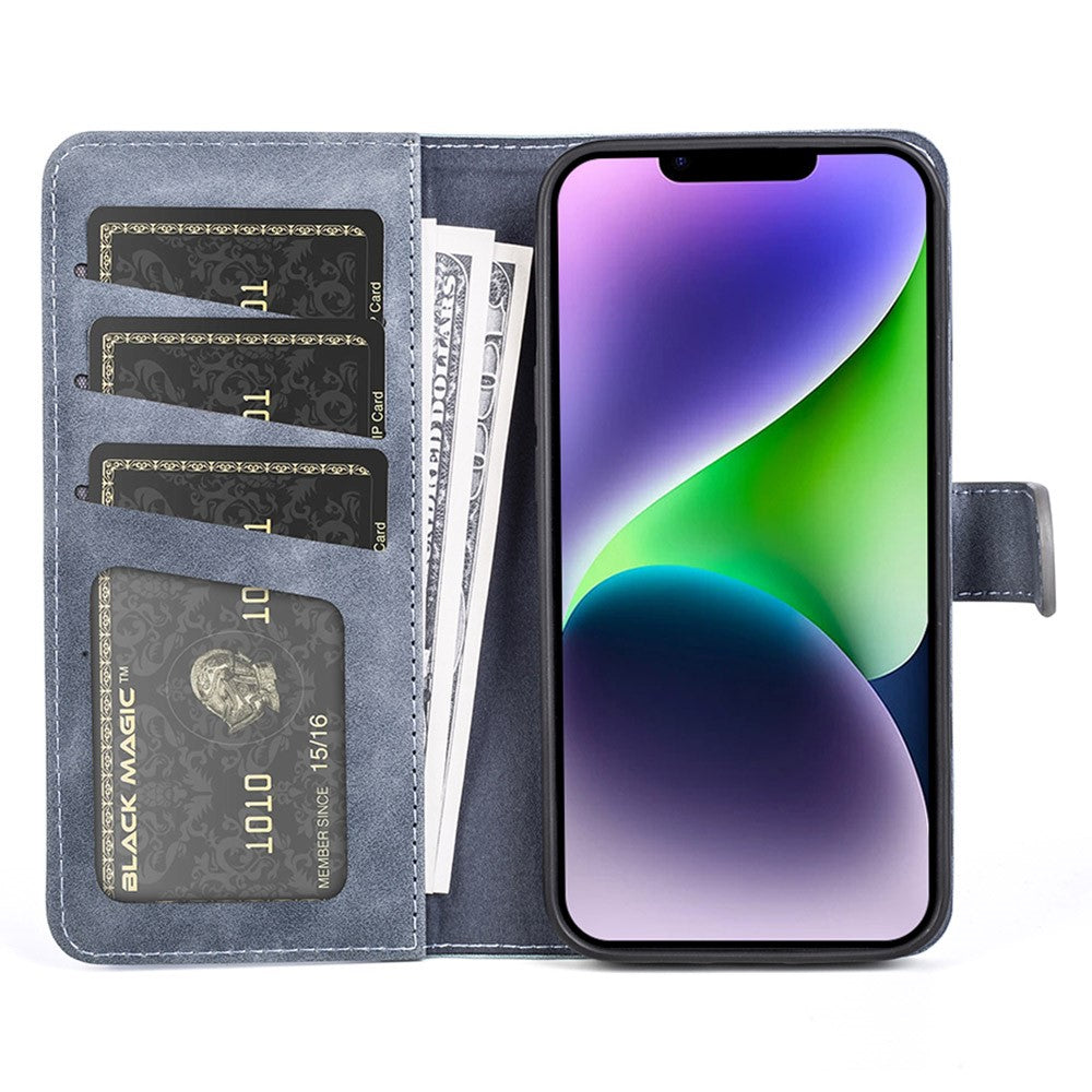 Etui bicolore en cuir pour iPhone 15 Plus - Bleu