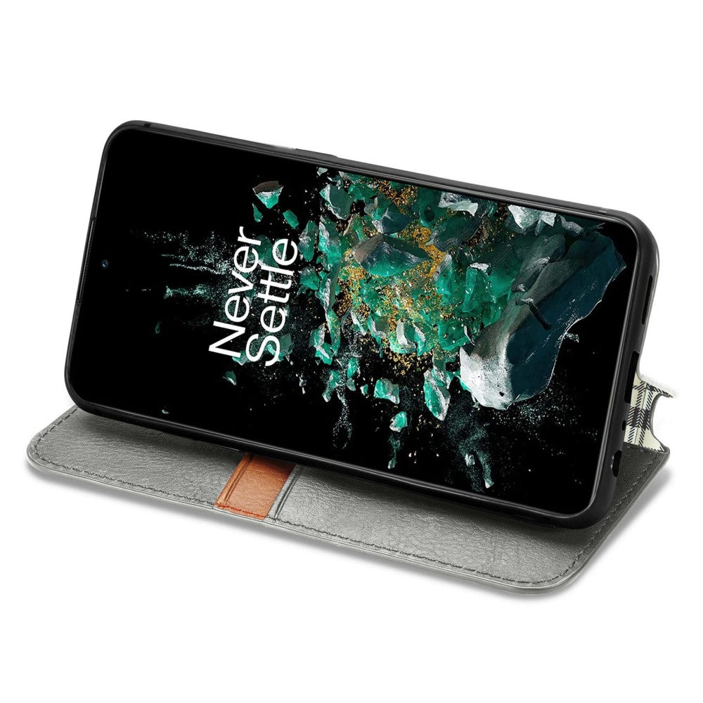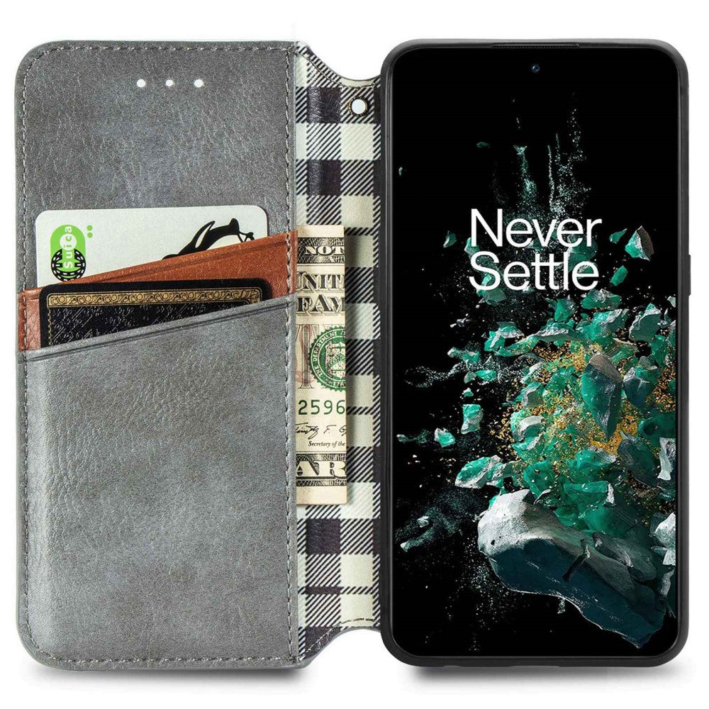 Étui en cuir avec une empreinte de losange élégante pour OnePlus Ace Pro / 10T - Gris