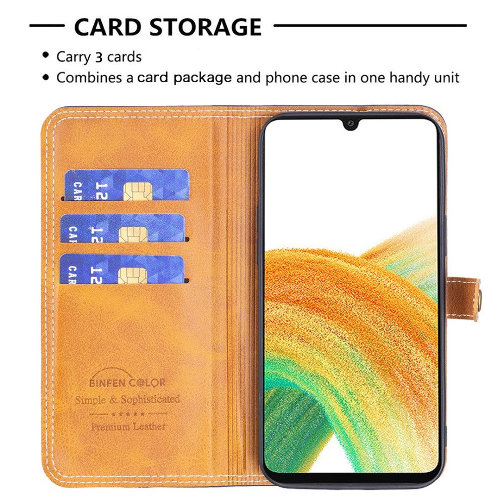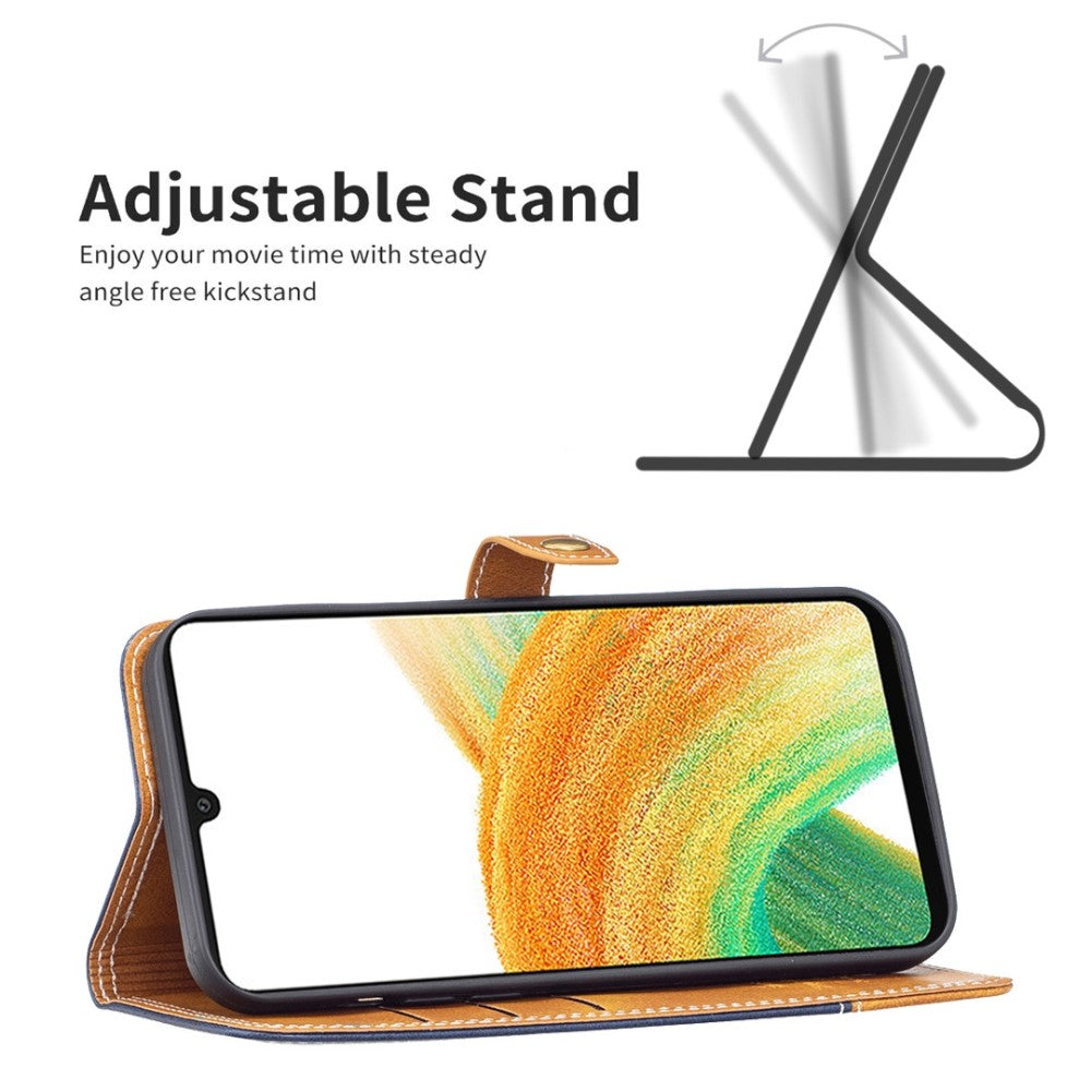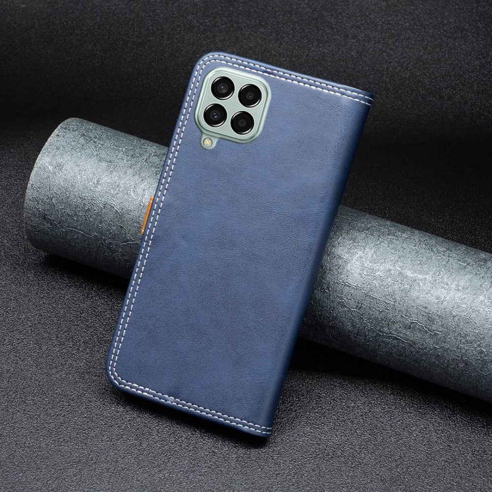 Étui en cuir bicolore BINFEN pour Samsung Galaxy M33 5G - Bleu