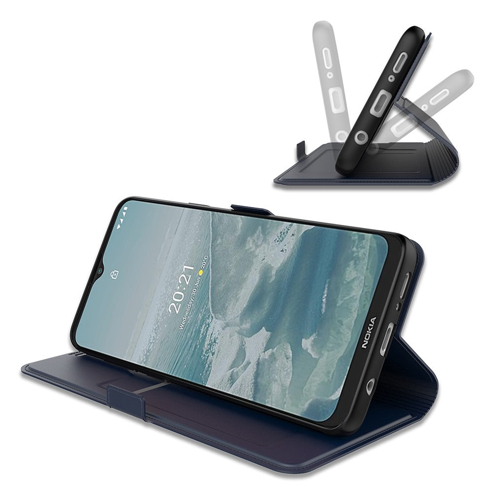 Étui en cuir PU premium lisse et fin pour Nokia C12 Plus / C12 / C12 Pro - Bleu