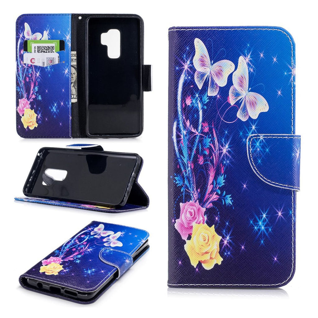 Étui en cuir Samsung Galaxy S9 Plus avec impression de motifs - Joli Papillon Et Étoile