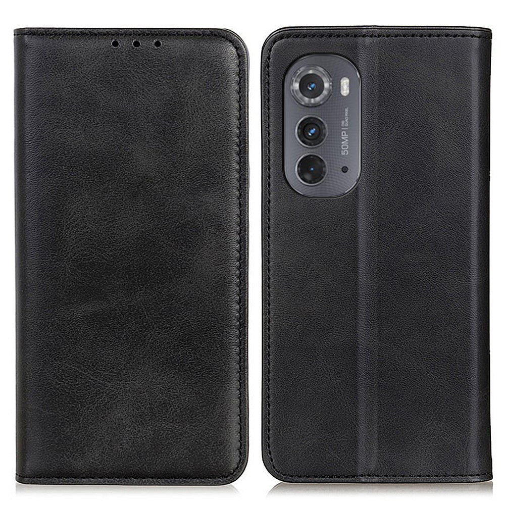 Étui en cuir véritable de type portefeuille pour Motorola Moto Edge 2022 - Noir