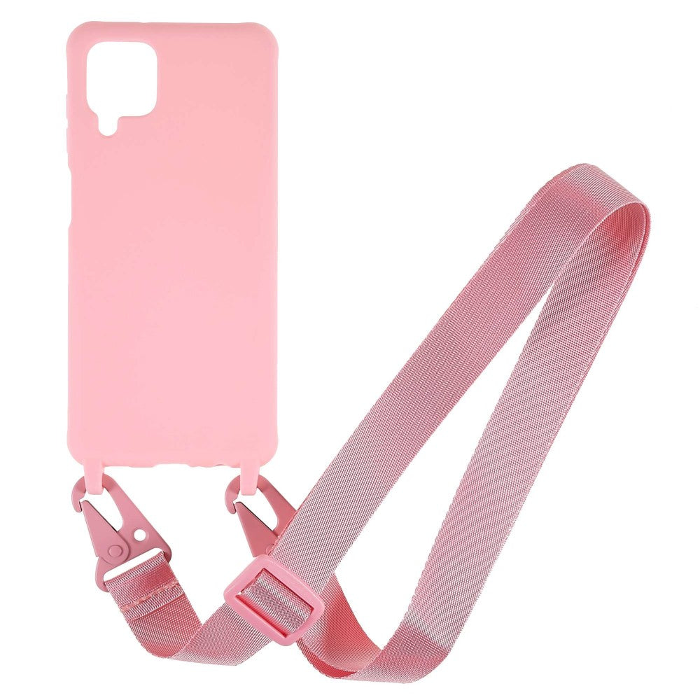 Étui fin en TPU avec une finition mate et une sangle réglable pour Samsung Galaxy A12 5G - Rose