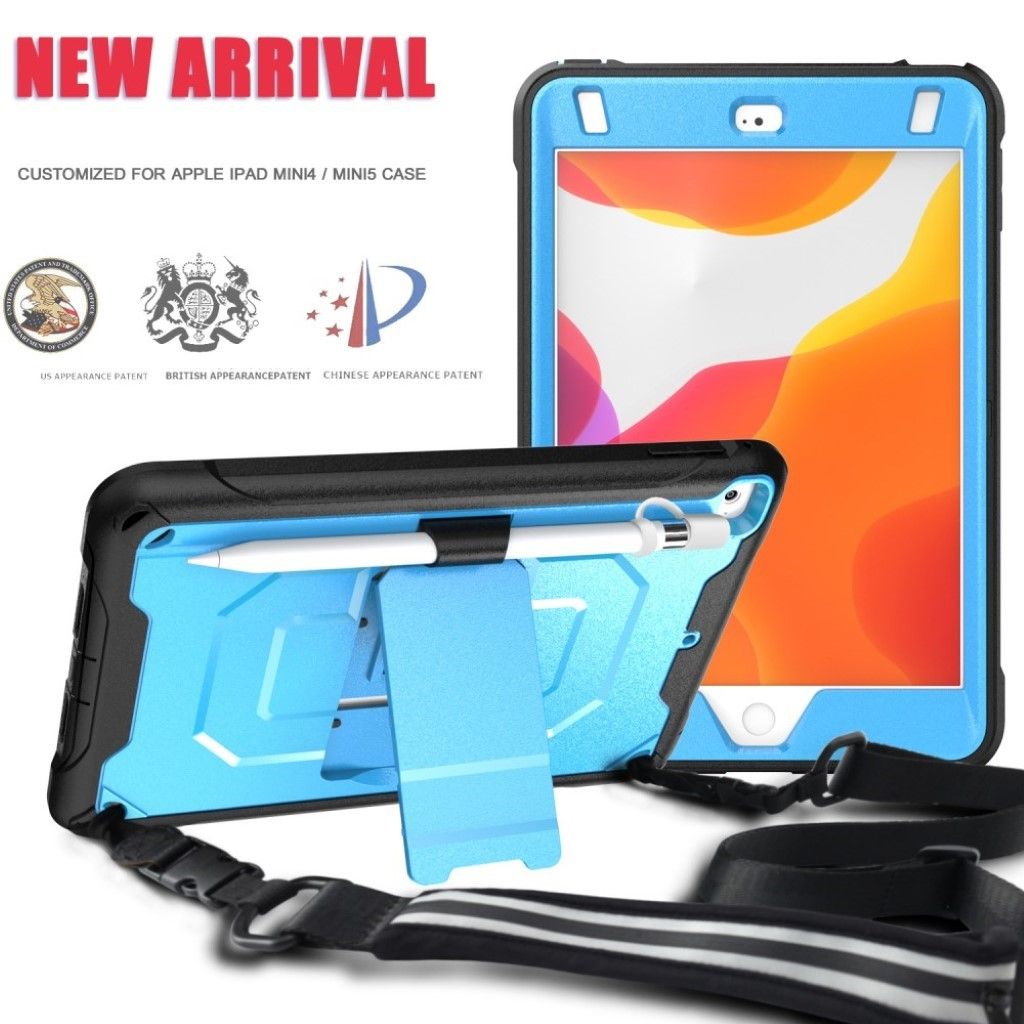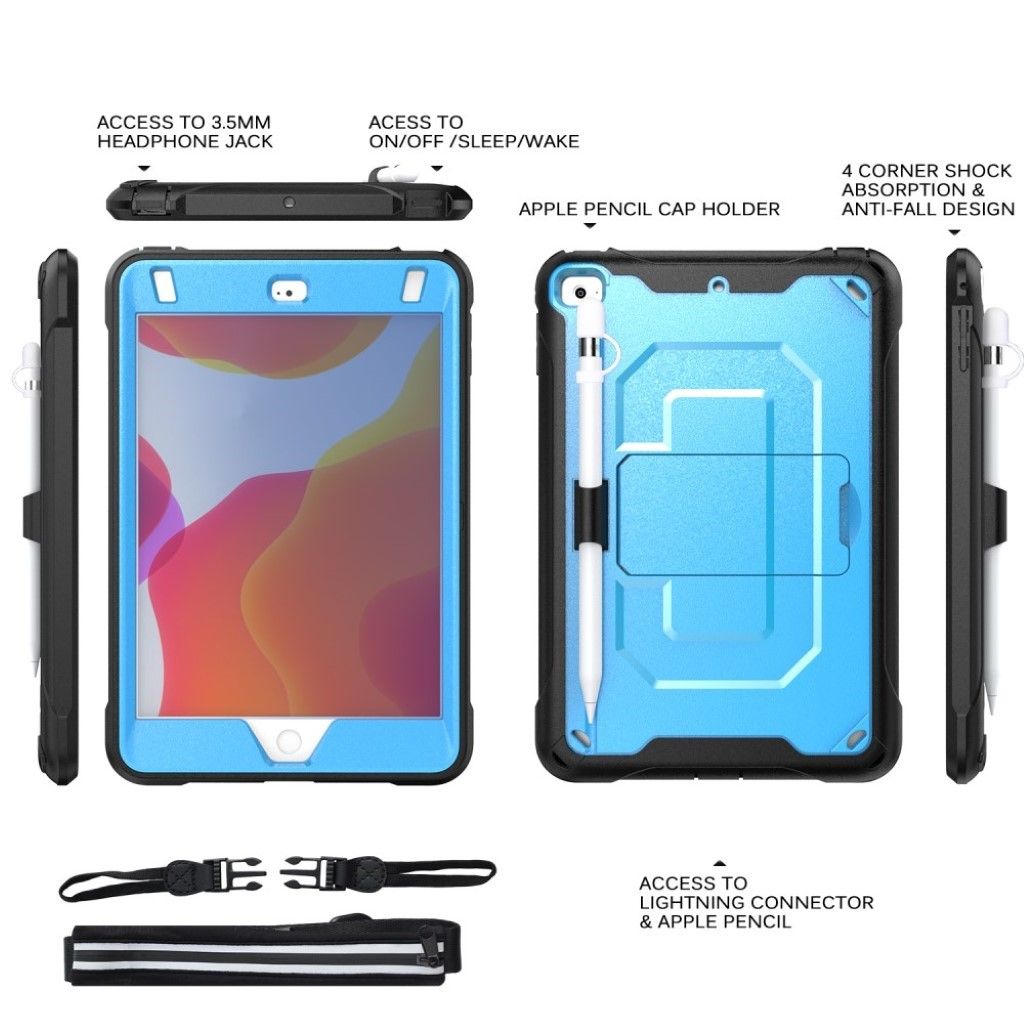 Étui hybride durable avec sangle à 360 degrés pour iPad Mini (2019) - Bleu