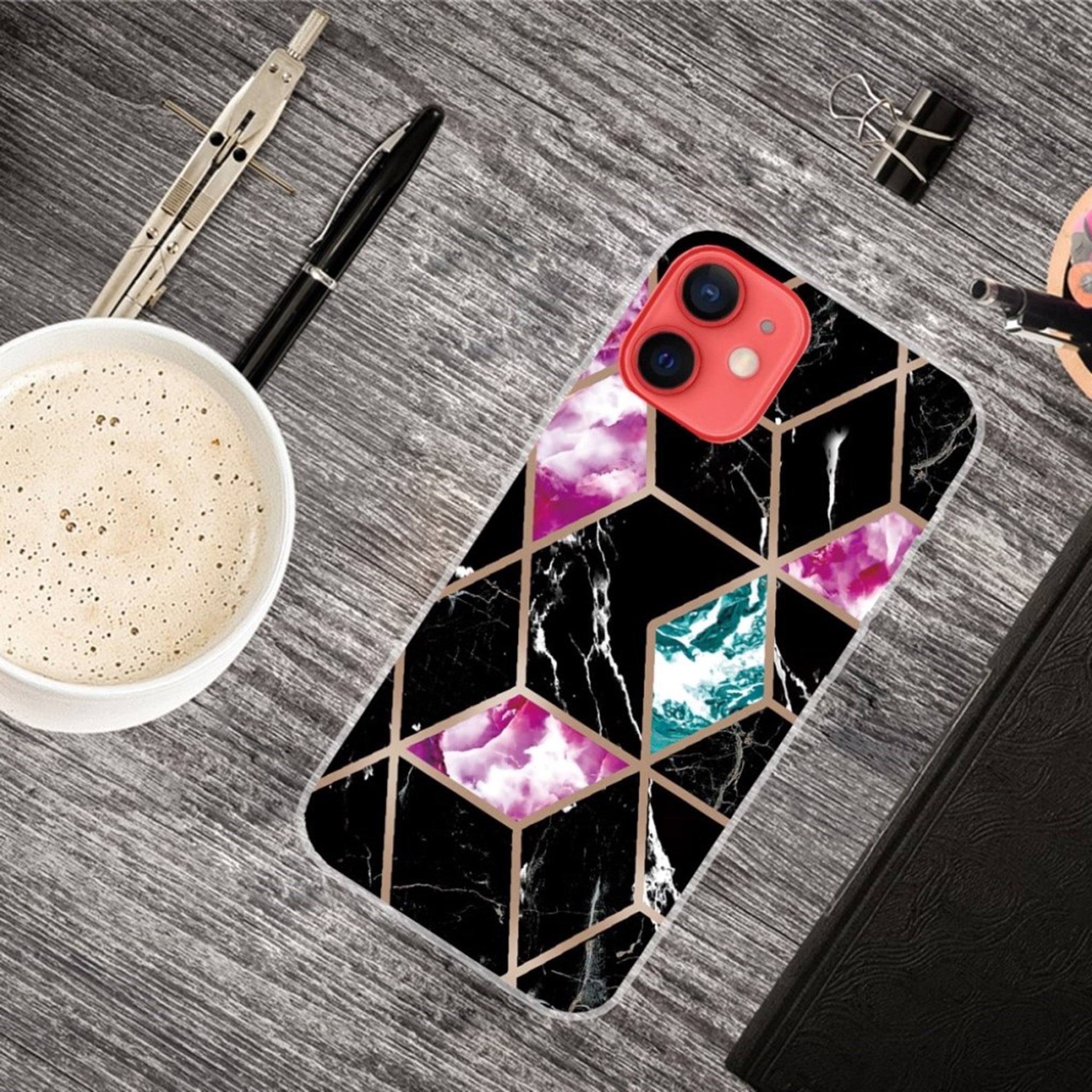 Étui Marbre pour iPhone 13 - Carreaux De Noir / Cyan / Rose
