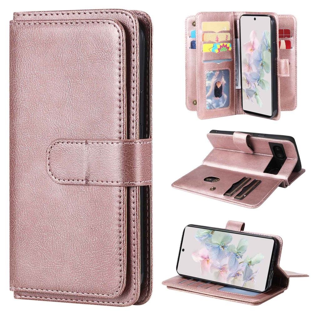 Étui portefeuille à 10 fentes pour Google Pixel 7 - Or Rose