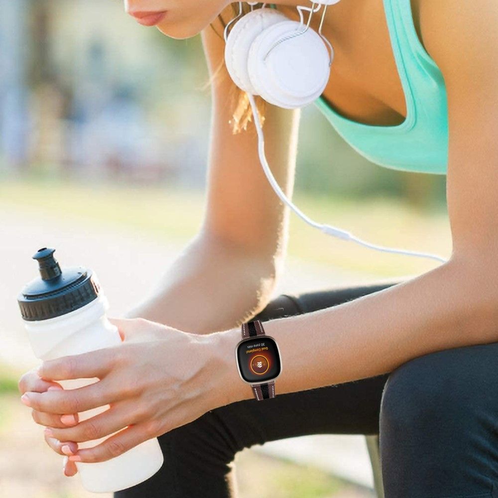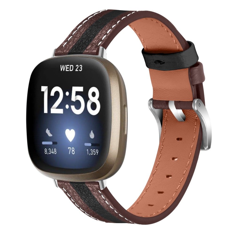Fitbit Sense / Versa 3 - Bracelet de montre en cuir de vachette - Marron / Noir