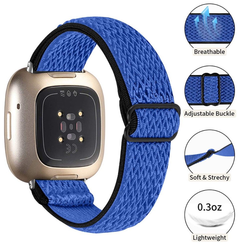For Fitbit Versa 3 / Fitbit Sense Elastic Watch Band Replacement Watch Strap with Adjustable Buckle - Dark Blue