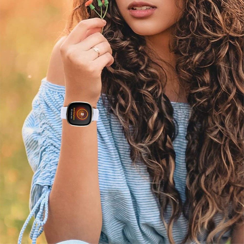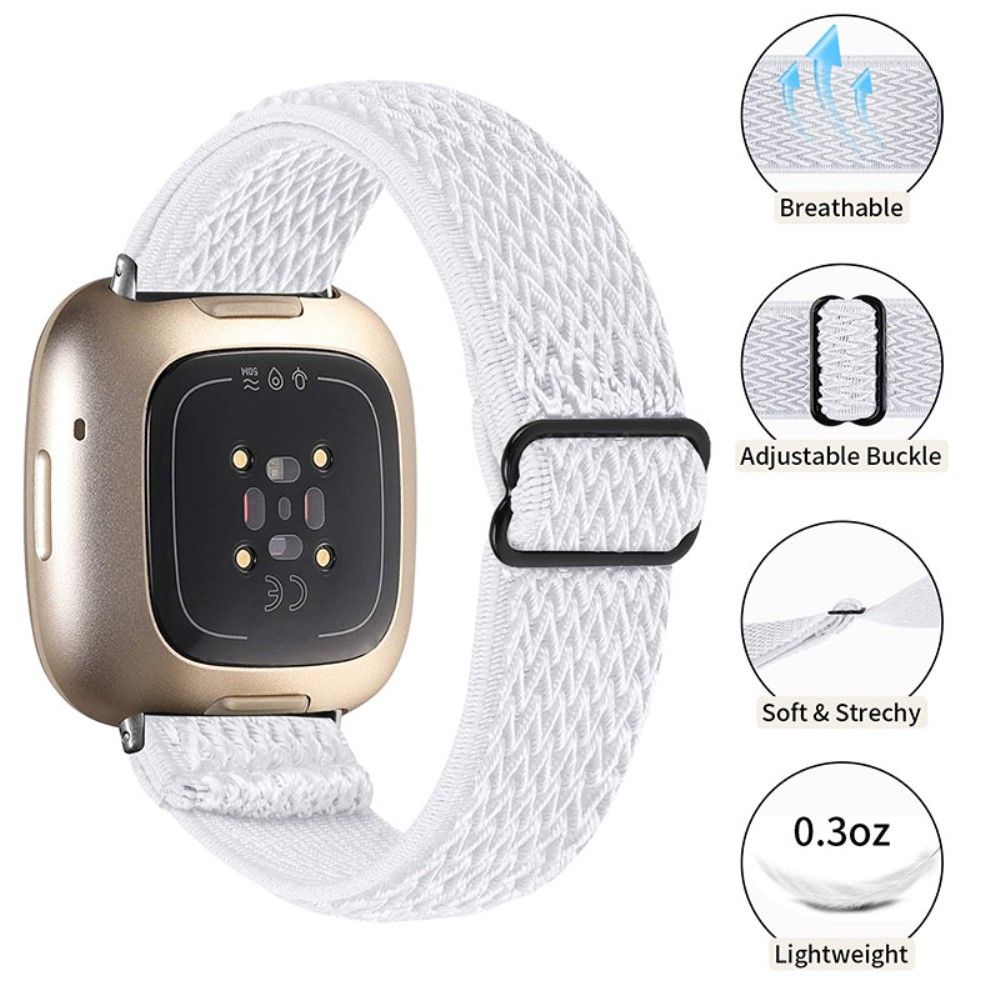 Fitbit Sense / Versa 3 elastic watch strap with adjustable buckle - White
