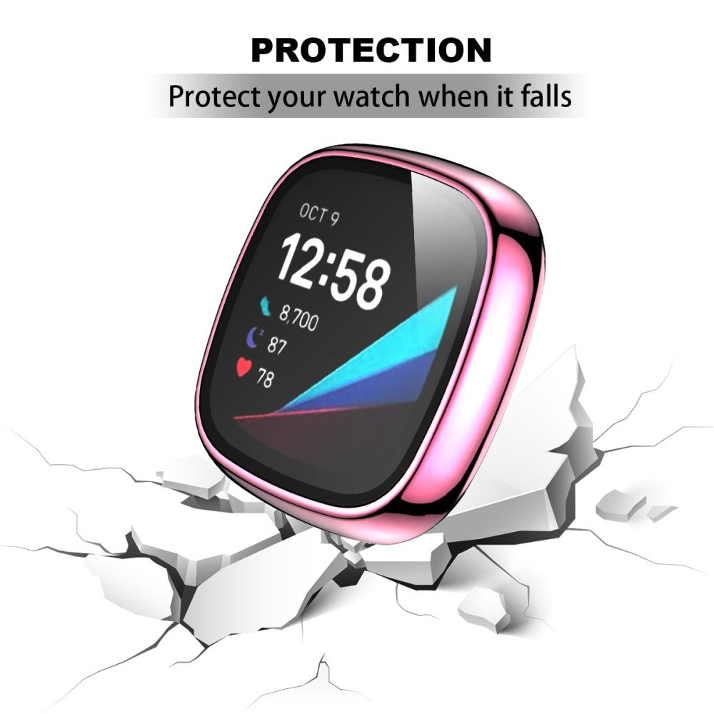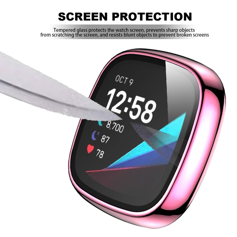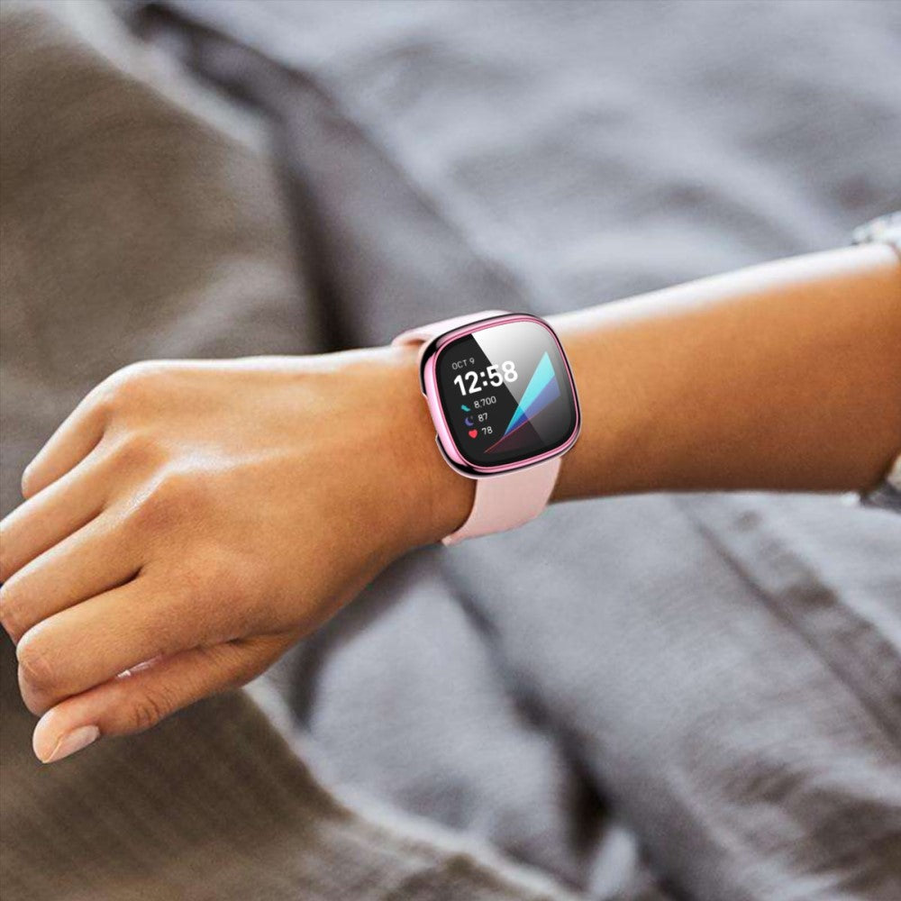 Fitbit Sense / Versa 3 housse de galvanoplastie avec verre trempé - Rose