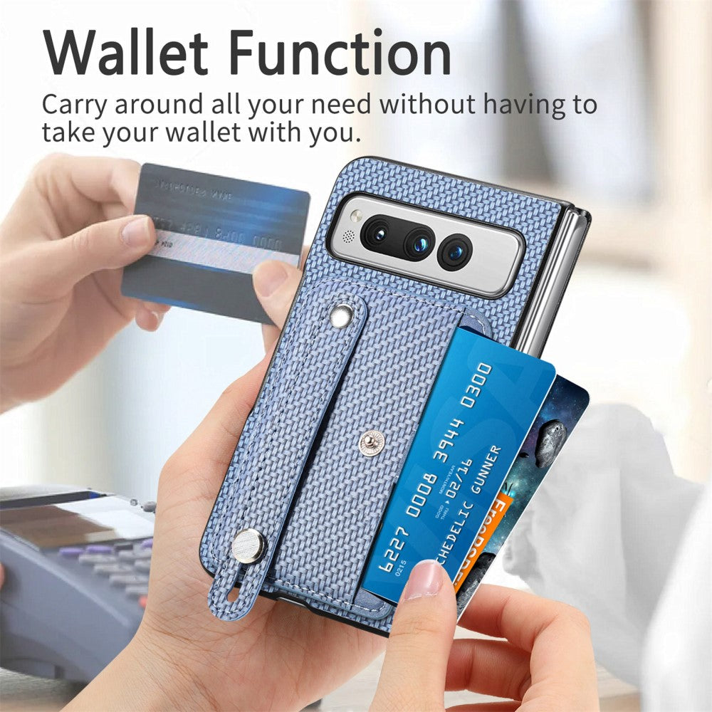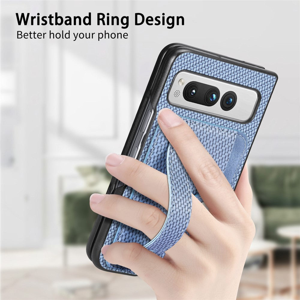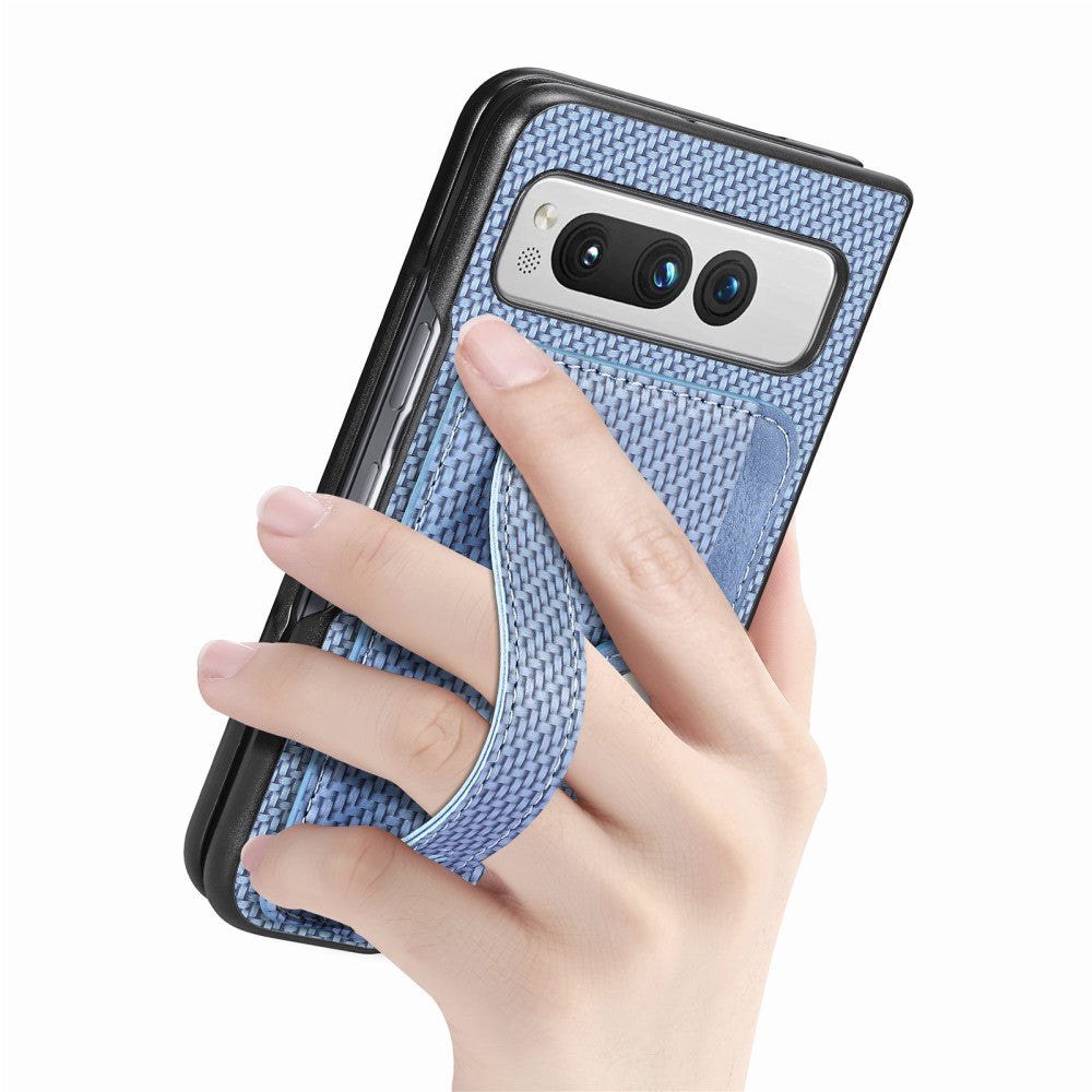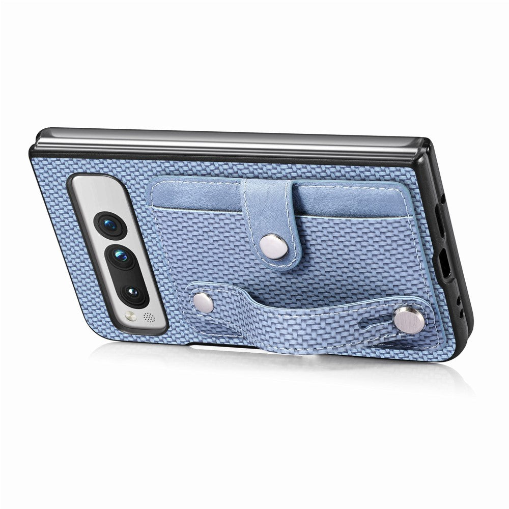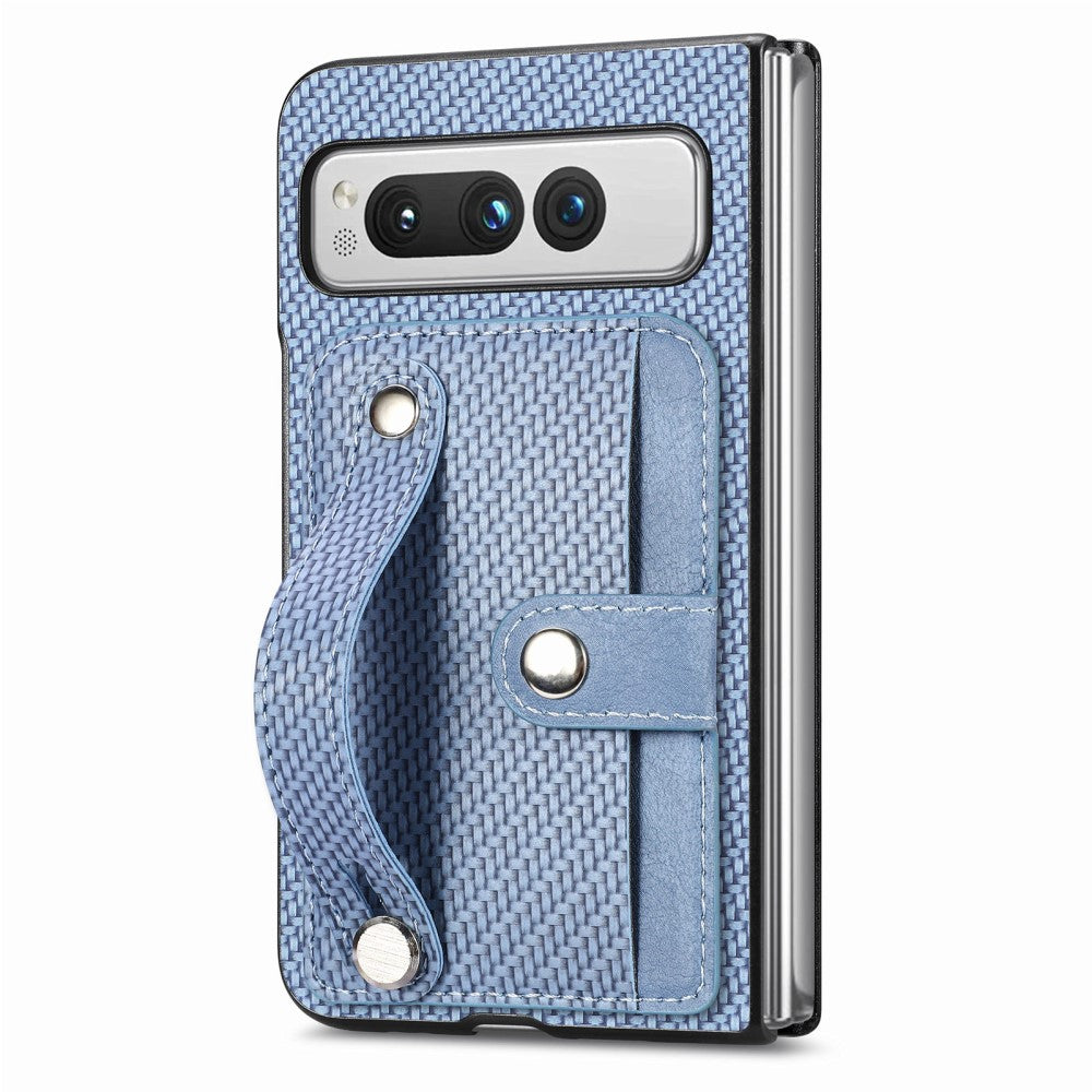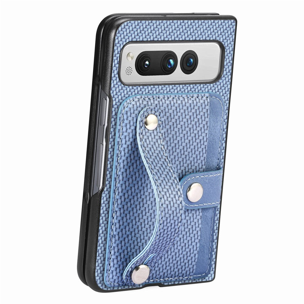Google Pixel Fold housse en cuir style fibre de carbone - Bleu