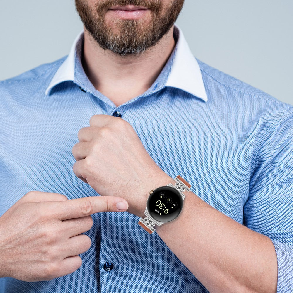 Crafted from genuine cow leather, this watch band combines durability with unmatched comfort, making it ideal for all-day wear. Its elegant design is highlighted by a distinctive flower-shaped crown molding, infusing a vintage charm that sets your watch apart from the ordinary. The adjustable stainless steel pin buckle allows for a customizable fit, ensuring that you can effortlessly find the perfect size for your wrist. This versatile accessory easily complements both formal and casual outfits, thanks to its sophisticated color palette and polished silver accents. The robust stainless steel buckle not only secures the band but also adds a touch of refinement to your timepiece. Please note that individuals with allergies to materials such as metal, leather, or silicone should consider this before purchasing. Elevate your style with this exceptional accessory that merges fashion and functionality seamlessly.