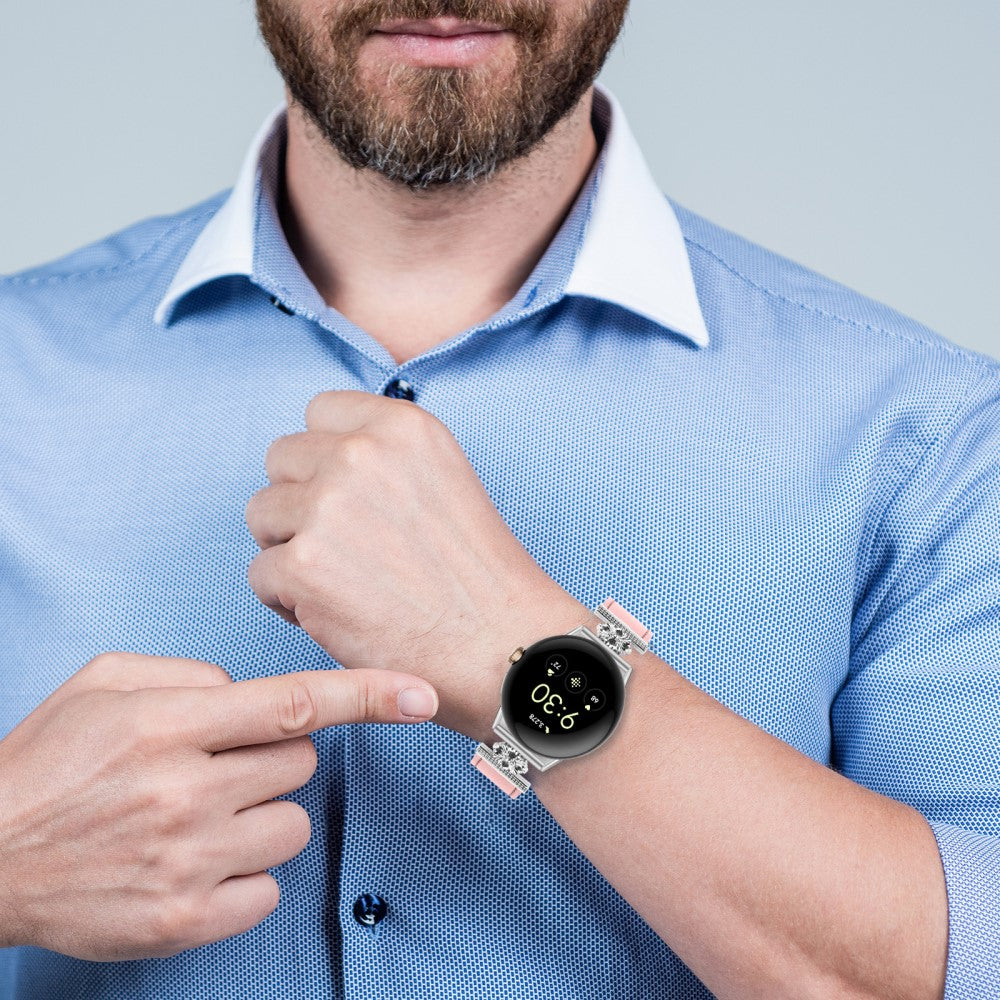 Google Pixel Watch 2 Watch Band Genuine Cow Leather Flower Decor Adjustable Strap - Pink