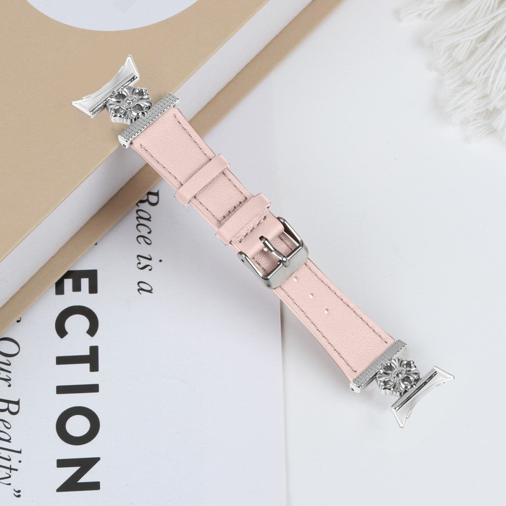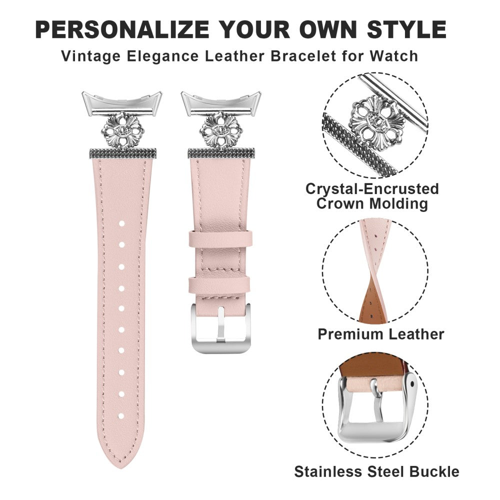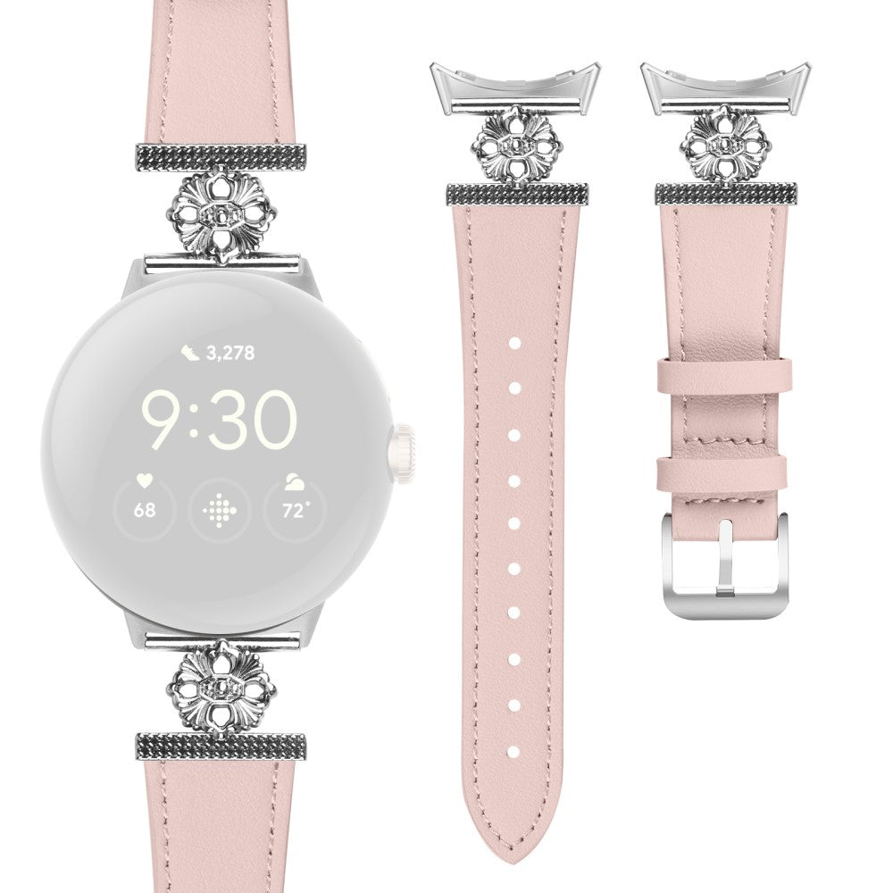 Google Pixel Watch Genuine Cow Leather Band Flower Decor Adjustable Strap - Pink