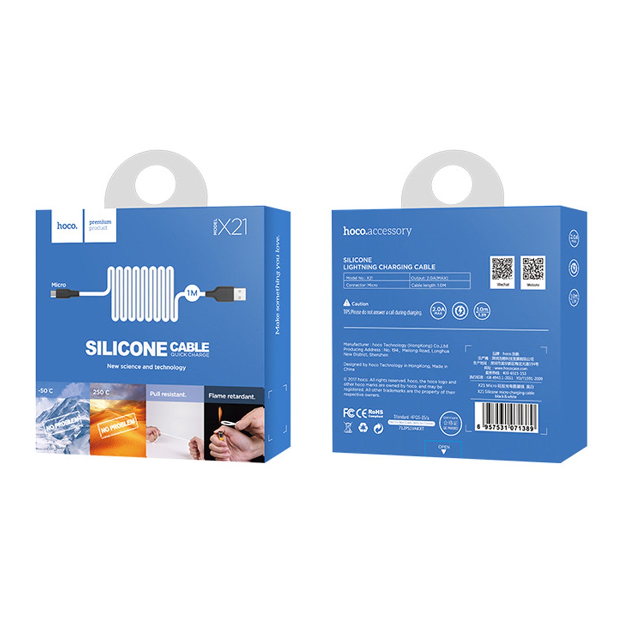 HOCO X21 Câble de recharge micro en silicone - Noir Et Blanc