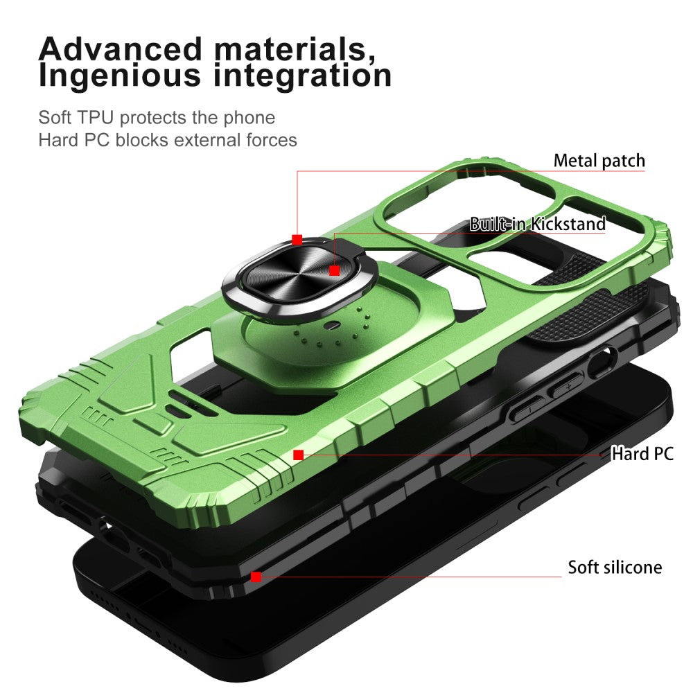 Housse en plastique dur durable avec intérieur souple et béquille pour iPhone 13 Pro - Vert