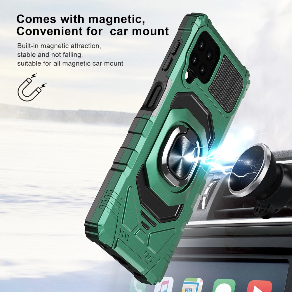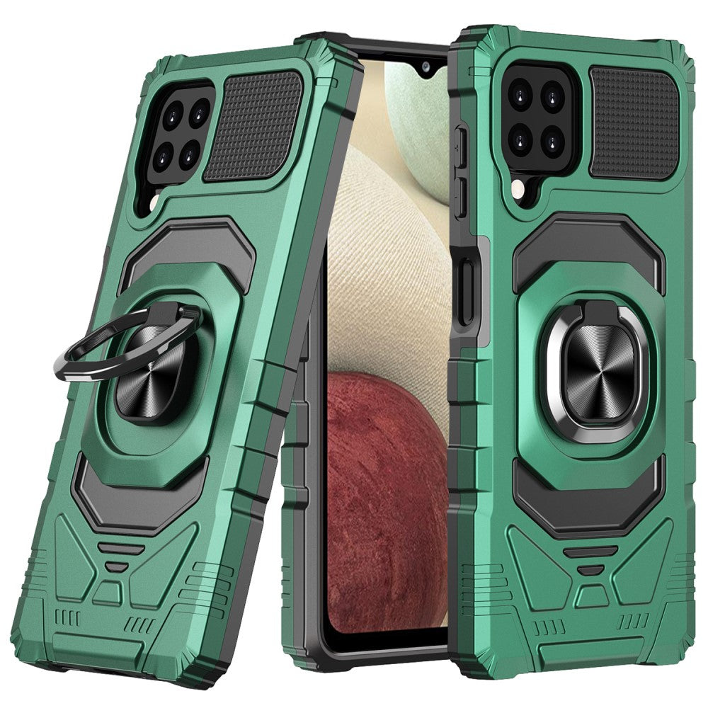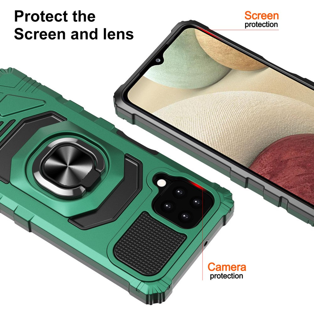 Housse en plastique dur durable avec intérieur souple et béquille pour Samsung Galaxy A12 5G - Midnight Green