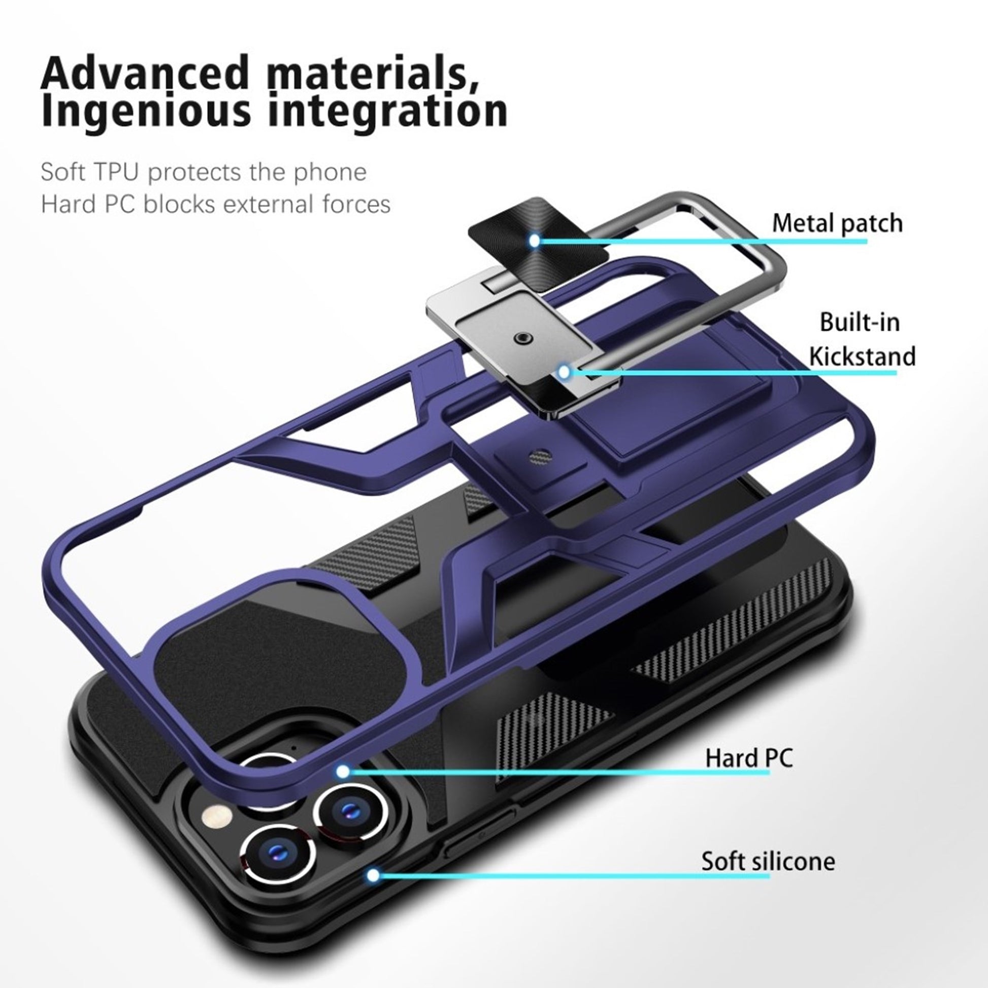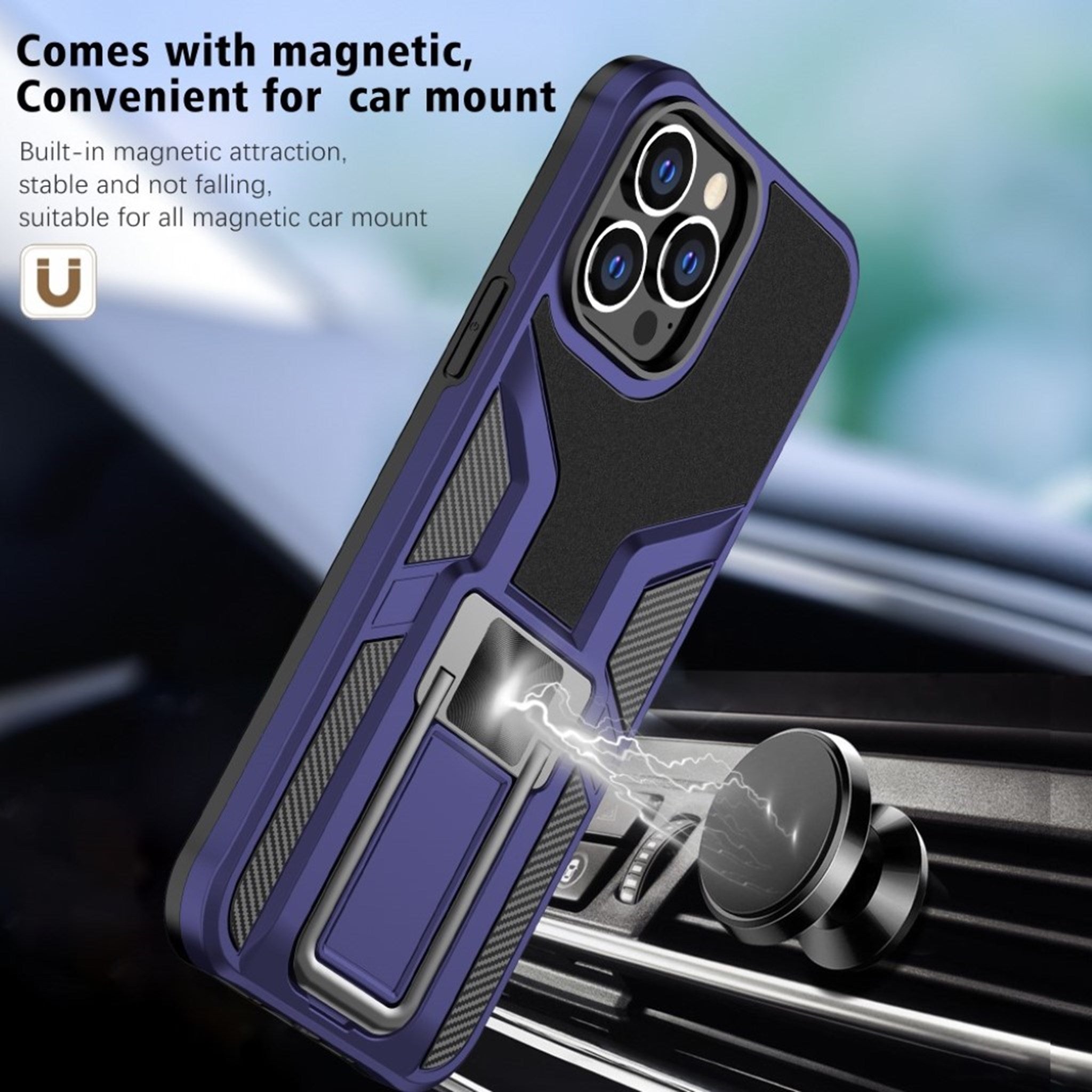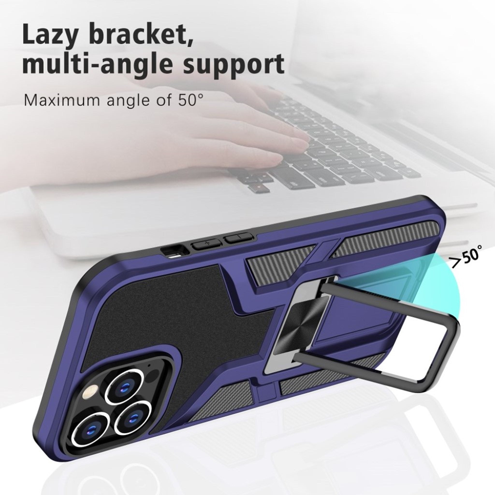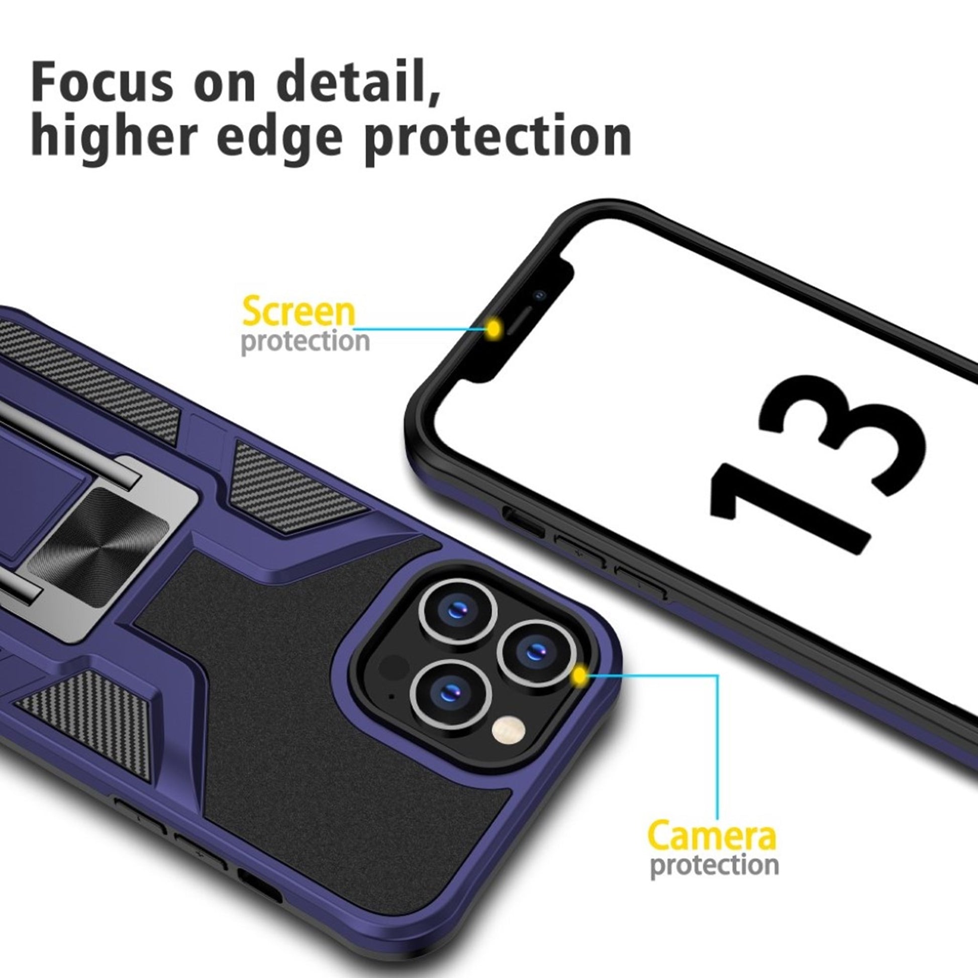 Housse hybride antichoc avec béquille pour iPhone 13 Pro Max - Bleu Foncé